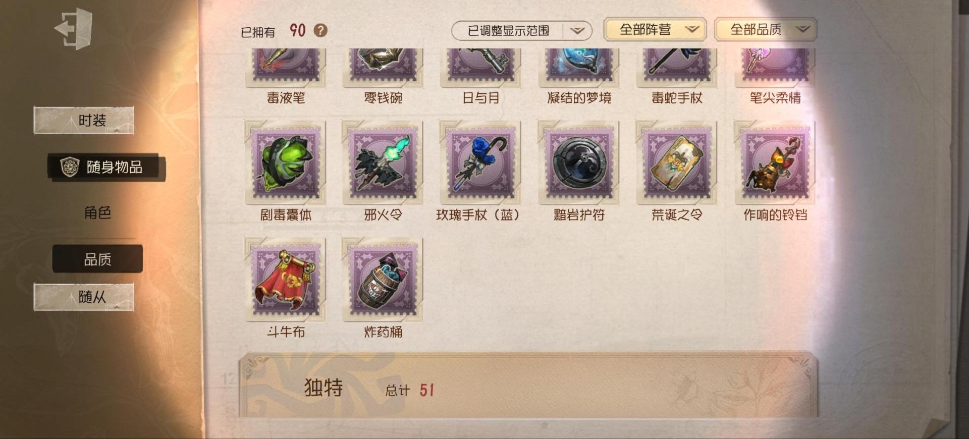 [14264411]华为 手机账号 173时装 6金皮 38紫皮 6随从 60随身物品 【时装】:“心理学家”-末世搜救,蜘蛛-光织守护,蜘蛛-时之猎手,咒术师-缄默者,邮差-琴键,佣兵-弹簧手,杂技演员-可可豆,空军-黑天鹅之羽,机械师-佐仓双叶,勘探员-雀舌,厂长-“阿拉丁”,“噩梦”-“渊”,爱哭鬼-被时间遗忘的男孩,“杰克”-忘川渡人,红夫人-贝拉夫人,小丑-稻草人,调香师-Lady K,调酒师-裁决之酒,调酒师-黑玫瑰,调酒师-江之岛盾子,医生-往昔,先知-历战猎人,小提琴家-衔尾蛇,小提琴家-孤月骑士,牛仔-教鞭,前锋-蛮牛之力,牛仔-逆刃之鞭,梦之女巫-川上富江,摄影师-En ligne,摄影师-阿波罗,摄影师-暮剑,宿伞之魂-残花泪,“囚徒”-冬蝉,入殓师-喜多川祐介,宿伞之魂-安魂曲,宿伞之魂-十字路口的美少年【随身物品】:“仁慈”(稀世),诅咒黑云(稀世),作响的铃铛(奇珍),炸药桶(奇珍),欢呼(奇珍),结冰的齿轮(奇珍),月光(奇珍),幽灵娃娃(奇珍),剪骨钳(奇珍),玫瑰手杖(蓝)(奇珍),唤潮(稀世),斗牛布(奇珍),火焰精灵(奇珍),星象仪(奇珍),完美人偶(稀世),心形泡泡圈(奇珍),Vote盒子(稀世),噬魂(稀世)