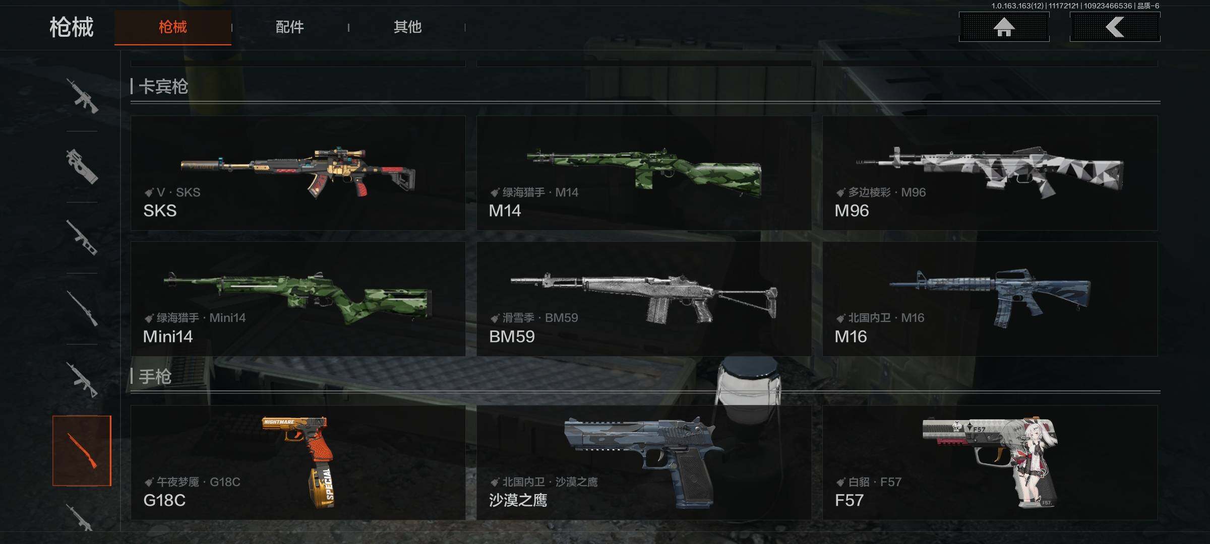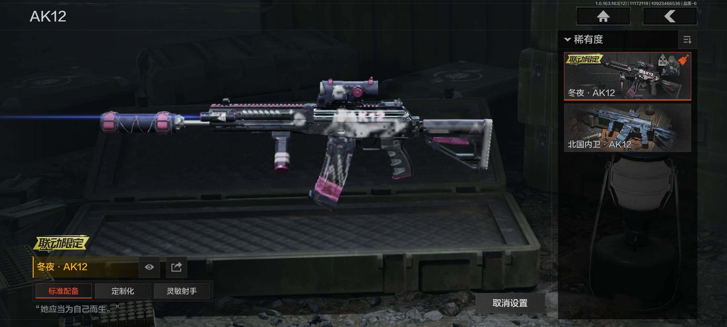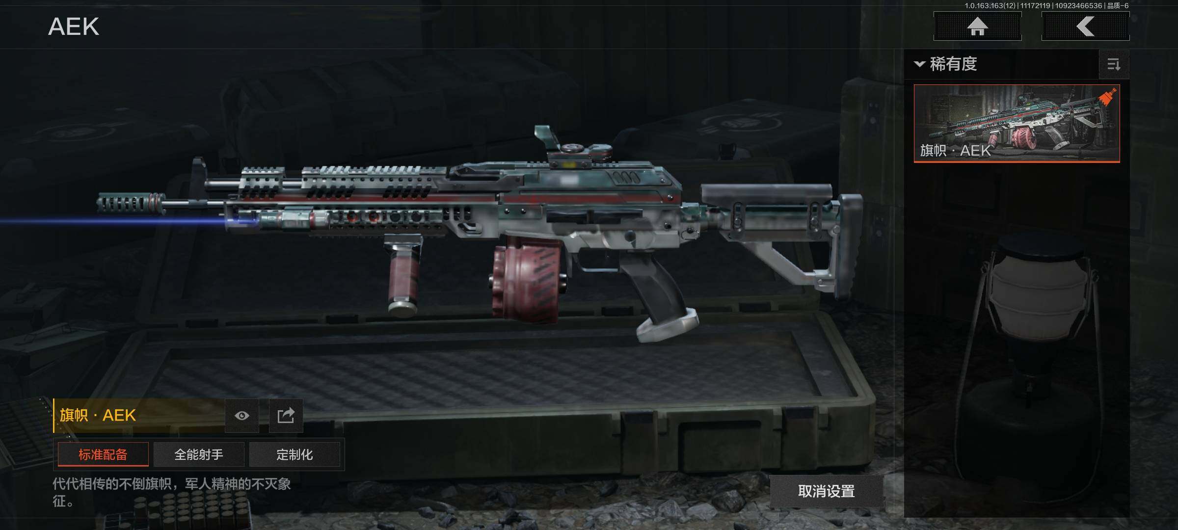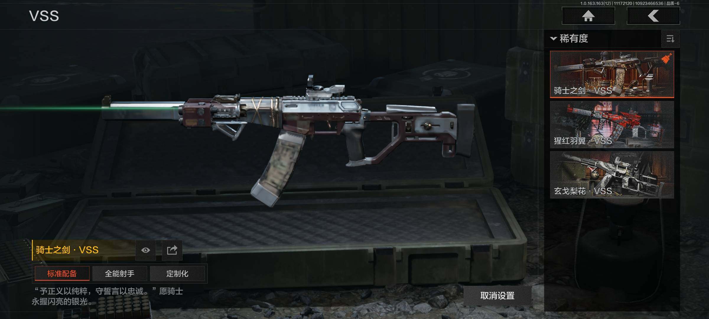 库存价值13.7 1近战武器 7金枪皮 可修改实名 【柯恩币数量】:1848【近战武器】:下弦月【金色枪皮】:告丧夜曲·AUG,旗帜·AEK,棱光裂变·QBU191,告丧夜曲·AR57,旧王圣谕·QBZ191,旧王圣谕·VSS,战术大师·AK102【紫色枪皮】:旗帜·SVDS,棱光裂变·ACE31,棱光裂变·AK74N,棱光裂变·AK102,棱光裂变·AKM,最后防线·AEK,禁止访问·UMP45,北国内卫·AN94,骑士之剑·SJ16,竞技·AUG,炎夏浪花·H416,快乐游戏·M110,典礼武备·M249,典礼武备·14,典礼武备·GROZA,猩红羽翼·VSS,无声暗月·AR57,竞技·M4A1,逆火·MDR,极恶·AUG,湖冰倒影·MP5,缟兵玄墨·MPX,07式林地迷彩·QBZ191,轰炸·AX50,娜迦·RPK16,涂绘猎人·AR57【角色装扮(紫)】:都市夜影套装