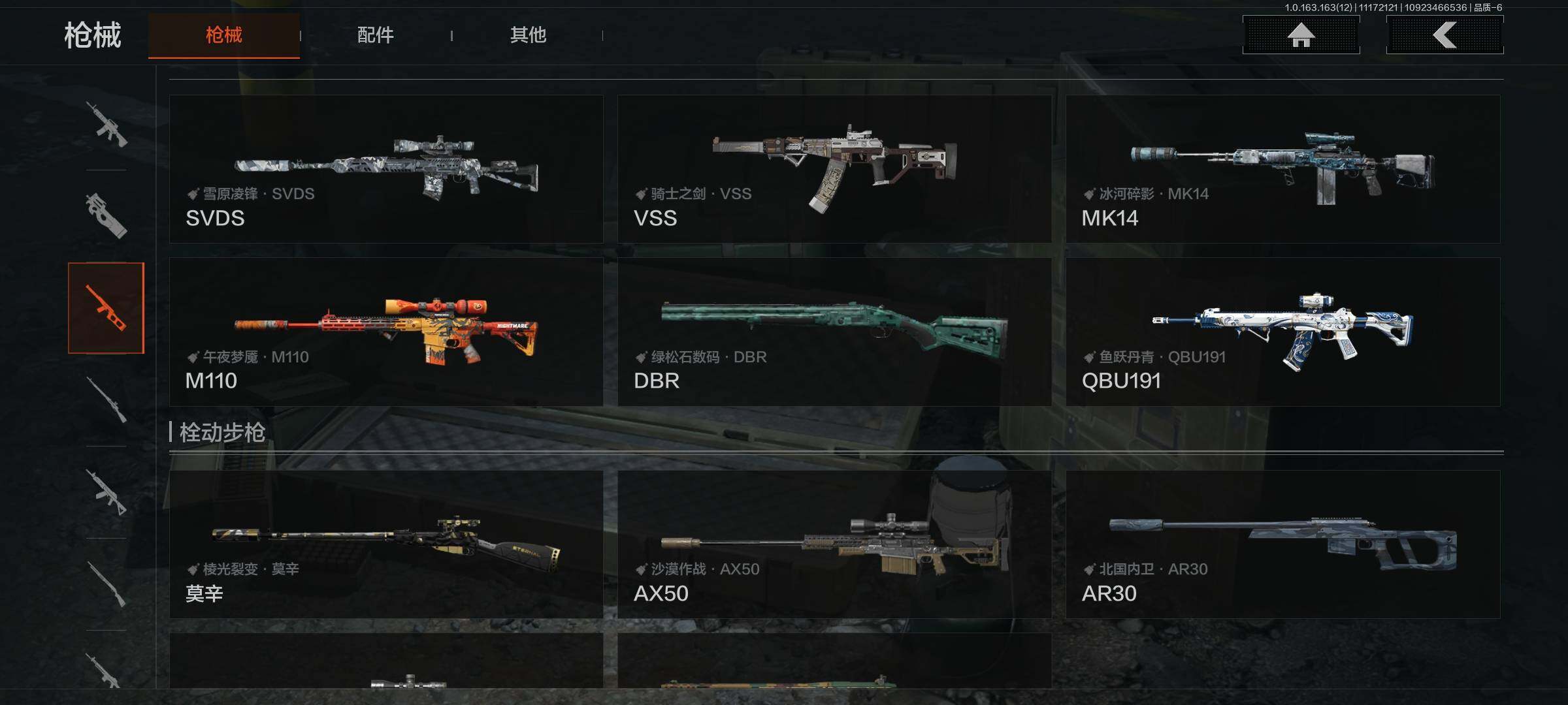 [13630734]库存价值102.7 6近战武器 2金套装 10金枪皮 可修改实名 【柯恩币数量】:3180【角色装扮(金)】:绕指玉鸾·战术甲胄,使徒·欧瑞恩【近战武器】:三尺万仞·战术剑,工兵铲,来战·开山刀,涂鸦利刃,冬日冰镐,急袭弯刀【金色枪皮】:利齿风暴·MPX,告丧夜曲·AUG,告丧夜曲·AR57,浮鳞影青·QBZ192,旧王圣谕·QBZ191,旧王圣谕·VSS,骑士之剑·VSS,长缨风掣·Vector9,长缨风掣·RPK16,长缨风掣·AX50【紫色枪皮】:棱光裂变·AK102,竞技·MDR,骑士之剑·AKS74U,炎夏浪花·H416,快乐游戏·MPX,骤羽尖啸·M4A1,秘域鎏金·RPK16,猩红羽翼·VSS,来战·AKM,德尔塔小队·M4A1,玄戈梨花·MPX,缟兵玄墨·VSS,缟兵玄墨·MPX,07式林地迷彩·QBZ191,玄戈梨花·VSS,涂绘猎人·AR57,战术大师·AK74N【角色装扮(紫)】:金狮护身·转运套装,台风IV竞技运动服