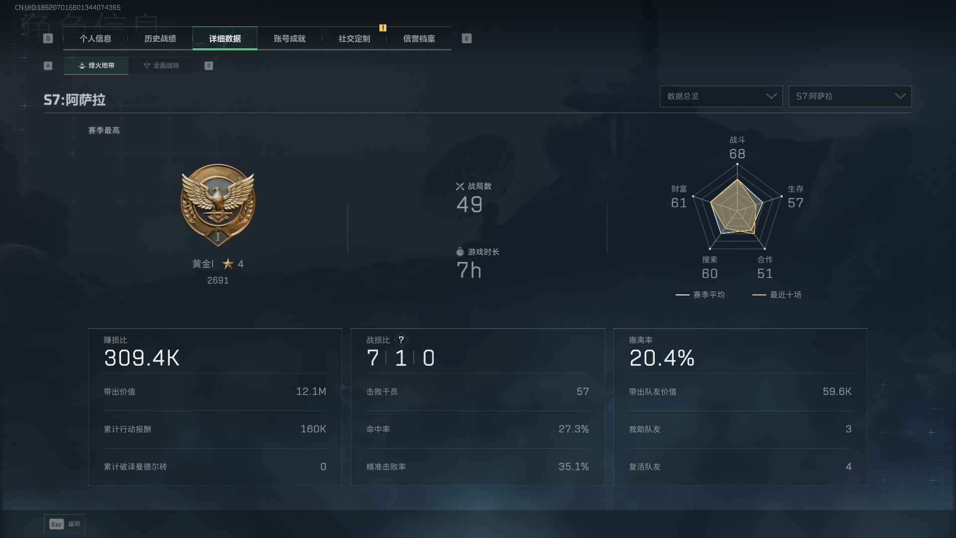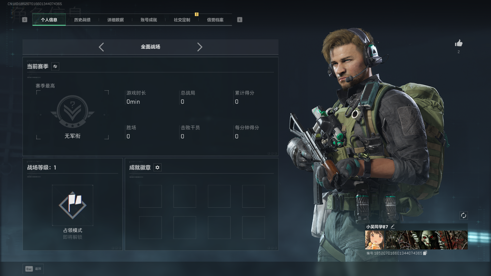 44m总资产-40490k哈伏币-36烽火等级-青铜-1战场等级-无军衔