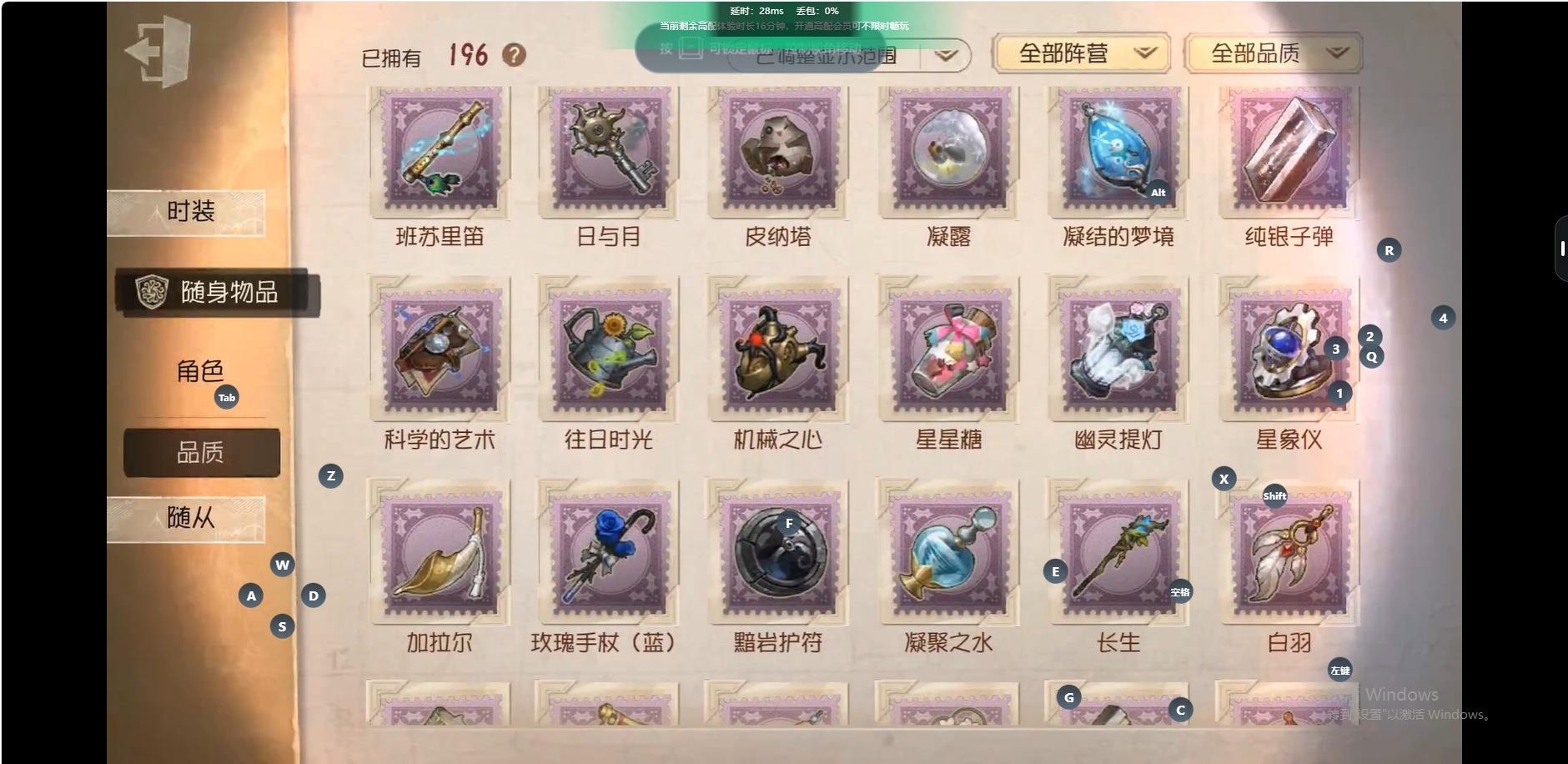 [14264411]华为 手机账号 173时装 6金皮 38紫皮 6随从 60随身物品 【时装】:“心理学家”-末世搜救,蜘蛛-光织守护,蜘蛛-时之猎手,咒术师-缄默者,邮差-琴键,佣兵-弹簧手,杂技演员-可可豆,空军-黑天鹅之羽,机械师-佐仓双叶,勘探员-雀舌,厂长-“阿拉丁”,“噩梦”-“渊”,爱哭鬼-被时间遗忘的男孩,“杰克”-忘川渡人,红夫人-贝拉夫人,小丑-稻草人,调香师-Lady K,调酒师-裁决之酒,调酒师-黑玫瑰,调酒师-江之岛盾子,医生-往昔,先知-历战猎人,小提琴家-衔尾蛇,小提琴家-孤月骑士,牛仔-教鞭,前锋-蛮牛之力,牛仔-逆刃之鞭,梦之女巫-川上富江,摄影师-En ligne,摄影师-阿波罗,摄影师-暮剑,宿伞之魂-残花泪,“囚徒”-冬蝉,入殓师-喜多川祐介,宿伞之魂-安魂曲,宿伞之魂-十字路口的美少年【随身物品】:“仁慈”(稀世),诅咒黑云(稀世),作响的铃铛(奇珍),炸药桶(奇珍),欢呼(奇珍),结冰的齿轮(奇珍),月光(奇珍),幽灵娃娃(奇珍),剪骨钳(奇珍),玫瑰手杖(蓝)(奇珍),唤潮(稀世),斗牛布(奇珍),火焰精灵(奇珍),星象仪(奇珍),完美人偶(稀世),心形泡泡圈(奇珍),Vote盒子(稀世),噬魂(稀世)