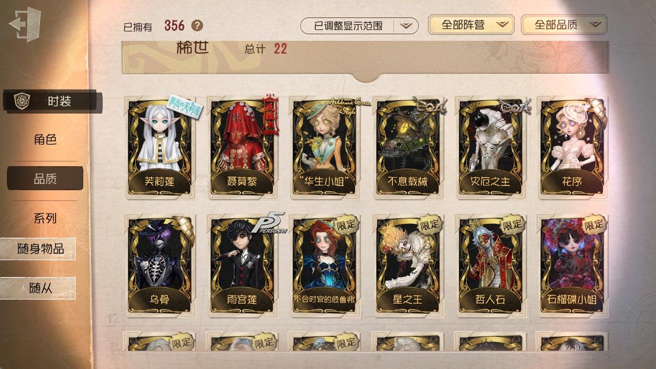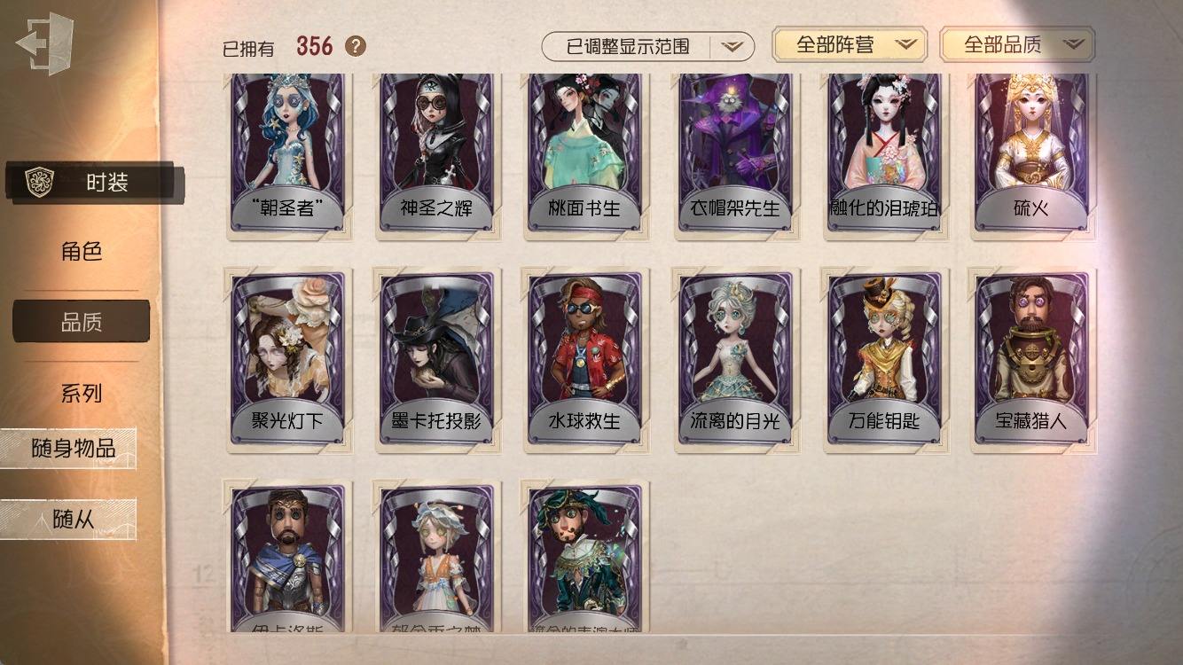 [14350031]华为 手机账号 471时装 10金皮 121紫皮 20随从 172随身物品 【时装】:渔女-垂泪的神女,勘探员-盖提亚之遗,黄衣之主-克朗普斯,渔女-破魔之刃,蜘蛛-墨卡托投影,咒术师-椰香假日,前锋-阿瓦尔的战车,机械师-纸心,黄衣之主-衣帽架先生,记者-伊布,红蝶-融化的泪琥珀,骑士-艺术品商人,画家-掌中篆记,古董商-陶梦嫣,入殓师-变彩,冒险家-赞因,“心理学家”-银骑士,蜘蛛-聚光灯下,渔女-瑶彩,飞行家-警戒哨台,“博士”-“裁纸机”,破轮-沙滩漂移,舞女-流离的月光,击球手-反骨之缚,机械师-心锁,昆虫学者-曼陀罗,昆虫学者-动植物学教授,雕刻家-“玛利亚”,病患-玛吉努,红夫人-夜潮,红蝶-仙鹤,舞女-“月佑者”,玩具商-藏,调酒师-海盐特调,调香师-今夜不再,“小女孩”-年岁,破轮-球球,前锋-慵懒的兔先生,盲女-甜心蛋糕,梦之女巫-川上富江
