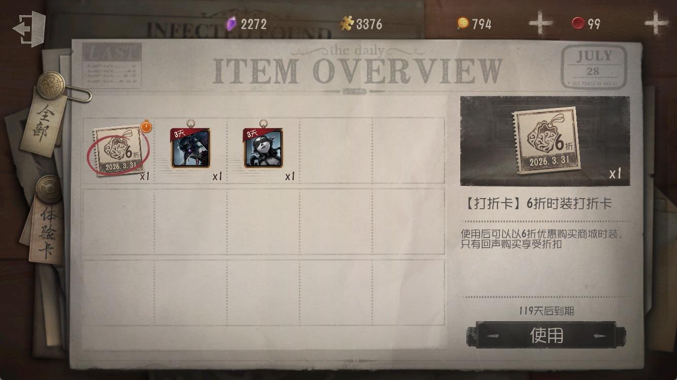 [14264411]华为 手机账号 173时装 6金皮 38紫皮 6随从 60随身物品 【时装】:“心理学家”-末世搜救,蜘蛛-光织守护,蜘蛛-时之猎手,咒术师-缄默者,邮差-琴键,佣兵-弹簧手,杂技演员-可可豆,空军-黑天鹅之羽,机械师-佐仓双叶,勘探员-雀舌,厂长-“阿拉丁”,“噩梦”-“渊”,爱哭鬼-被时间遗忘的男孩,“杰克”-忘川渡人,红夫人-贝拉夫人,小丑-稻草人,调香师-Lady K,调酒师-裁决之酒,调酒师-黑玫瑰,调酒师-江之岛盾子,医生-往昔,先知-历战猎人,小提琴家-衔尾蛇,小提琴家-孤月骑士,牛仔-教鞭,前锋-蛮牛之力,牛仔-逆刃之鞭,梦之女巫-川上富江,摄影师-En ligne,摄影师-阿波罗,摄影师-暮剑,宿伞之魂-残花泪,“囚徒”-冬蝉,入殓师-喜多川祐介,宿伞之魂-安魂曲,宿伞之魂-十字路口的美少年【随身物品】:“仁慈”(稀世),诅咒黑云(稀世),作响的铃铛(奇珍),炸药桶(奇珍),欢呼(奇珍),结冰的齿轮(奇珍),月光(奇珍),幽灵娃娃(奇珍),剪骨钳(奇珍),玫瑰手杖(蓝)(奇珍),唤潮(稀世),斗牛布(奇珍),火焰精灵(奇珍),星象仪(奇珍),完美人偶(稀世),心形泡泡圈(奇珍),Vote盒子(稀世),噬魂(稀世)