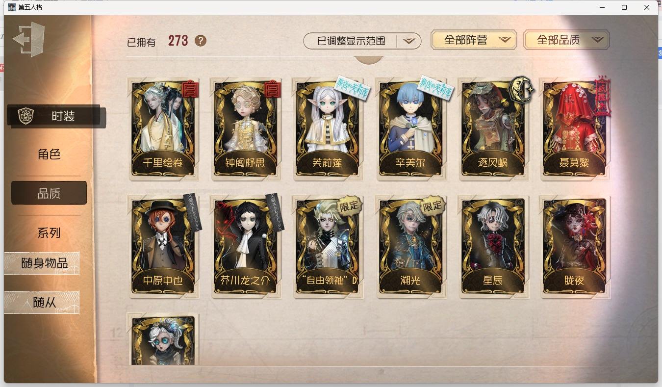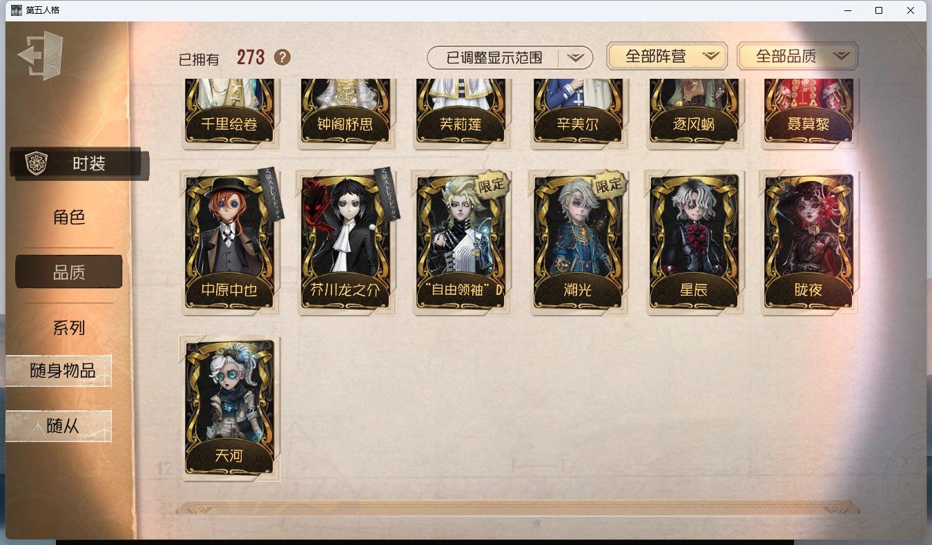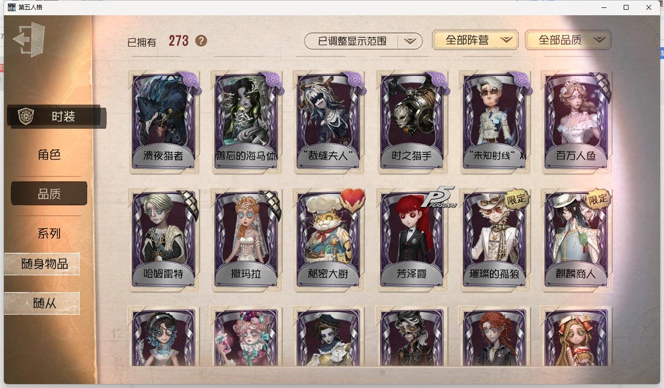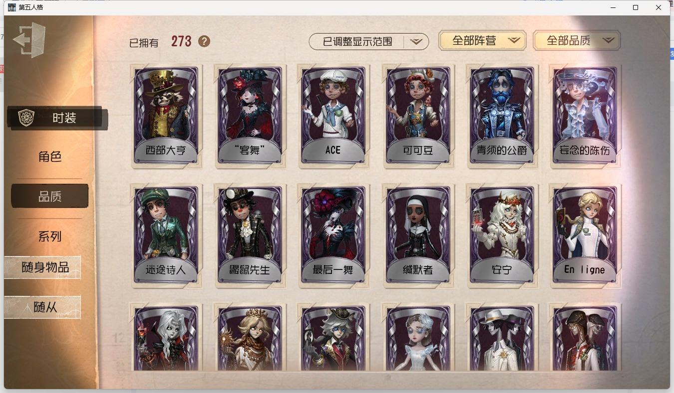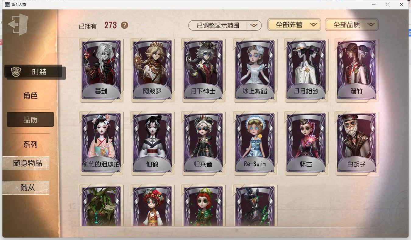 [14349997]苹果官服 邮箱账号 1虚妄杰作 243时装 13金皮 70紫皮 18随从 101随身物品 【时装】:古董商-招风旗,渔女-垂泪的神女,使徒-多加雷萨,小说家-最原终一,画家-温暖的平安夜,古董商-木兰,园丁-异想Hello Kitty,爱哭鬼-摩诺,渔女-百万人鱼,律师-亚伯拉罕·葛雷,祭司-“绯”,渔女-Chef K,古董商-填海平,邮差-秋日随想,“囚徒”-天海兰太郎,调香师-提炼师,古董商-黑鸦,咒术师-椰香假日,杂技演员-雨宫莲,杂技演员-JOKER,空军-爱神之吻,记者-伊布,红蝶-融化的泪琥珀,大副-雷斯垂德探长,雕刻家-善忘的海马体,骑士-艺术品商人,爱哭鬼-善恶的本性,教授-吟游诗人,画家-掌中篆记,26号守卫-秘密大厨,小说家-无归的昨日,冒险家-赞因,“法罗女士”-向深处求告,魔术师-动力芯,幸运儿-蛋小黄的好朋友,古董商-墨韵,宿伞之魂-桃面书生,摄影师-“琥珀”,勘探员-盛夏飞盘,“法罗女士”-VIOLET,古董商-菌丝研究,先知-纯白之盐,调酒师-逐浪的玫瑰,“法罗女士”-芳泽霞,“小女孩”-异动指针,小说家-“伊始新篇”,园丁-郁金香之梦,破轮-沙滩漂移,蜡像师-收藏品,空军-新岛真,空军-QUEEN,祭司-“朝圣者”,机械师-佐仓双叶,空军-“苏珊娜”,蜡像师-淋浴,魔术师-梅林,昆虫学者-可妮兔,“杰克”-夜来香,大副-明智吾郎,“噩梦”-随机数,红蝶-仙鹤,红蝶-彼岸,红蝶-更纱,红夫人-贝拉夫人,红蝶-竹华,舞女-高卷杏,舞女-女武神,舞女-PANTHER,调香师-致命温柔,调香师-Lady K,调香师-红菱艳,调香师-摩涅莫绪涅之梦,调香师-花序,园丁-奥村春,先知-月相,“小女孩”-年岁,前锋-坂本龙司,盲女-海西遗风,梦之女巫-川上富江,摄影师-月下绅士,入殓师-喜多川祐介【随身物品】:荣光的残像(稀世),茅龙书(稀世),夏(稀世),遗忘之花(稀世),火火火(奇珍),指挥(奇珍),海岸花环(奇珍),海之低语(奇珍),集邮册(奇珍),回旋镖(奇珍),炸药桶(奇珍),“全熟”(奇珍),凝固的声音(奇珍),漂浮(奇珍),充气海豚(奇珍),沙漠精灵(奇珍),咖啡壶(稀世),德米特里1号(奇珍),聚集哨笛(奇珍),手摇铃(奇珍),酩酊(奇珍),心海之梦(奇珍),欢呼(奇珍),糖果鬼(奇珍),秘密(奇珍),折柳(稀世),海底遗物(奇[13739442]苹果官服 邮箱账号 208时装 15金皮 63紫皮 8随从 78随身物品 【时装】:守夜人-KNIGHT-c3,破轮-胡桃夹子,勘探员-盖提亚之遗,飞行家-异相睡眠,小丑-捣蛋裘克,爱哭鬼-摩诺,作曲家-幽灵帆,舞女-西尔菲德,佣兵-中岛敦,园丁-宇宙女巫,杂技演员-茶话会,记者-华生小姐,“囚徒”-OPH.LUCA,骑士-Mentor K,教授-吟游诗人,病患-溯光,“杰克”-加里,雕刻家-善忘的海马体,邮差-华生医生,小丑-OPH.JOKER,邮差-潘塔龙,小说家-“伊始新篇”,哭泣小丑-熄灭的太阳,“法罗女士”-芳泽霞,时空之影-“有机磷”,入殓师-“温室”,“记录员”-删除符,击球手-迫降专家,哭泣小丑-炮弹飞船,勘探员-中原中也,爱哭鬼-雪上小王子,红夫人-女大公,画家-江户川乱步,红蝶-更纱,舞女-高卷杏,调酒师-海盐特调,幸运儿-双一,小丑-变脸王,魔术师-广津柳浪,梦之女巫-信使,前锋-SKULL,梦之女巫-川上富江,前锋-坂本龙司,摄影师-宿醉,“囚徒”-太宰治