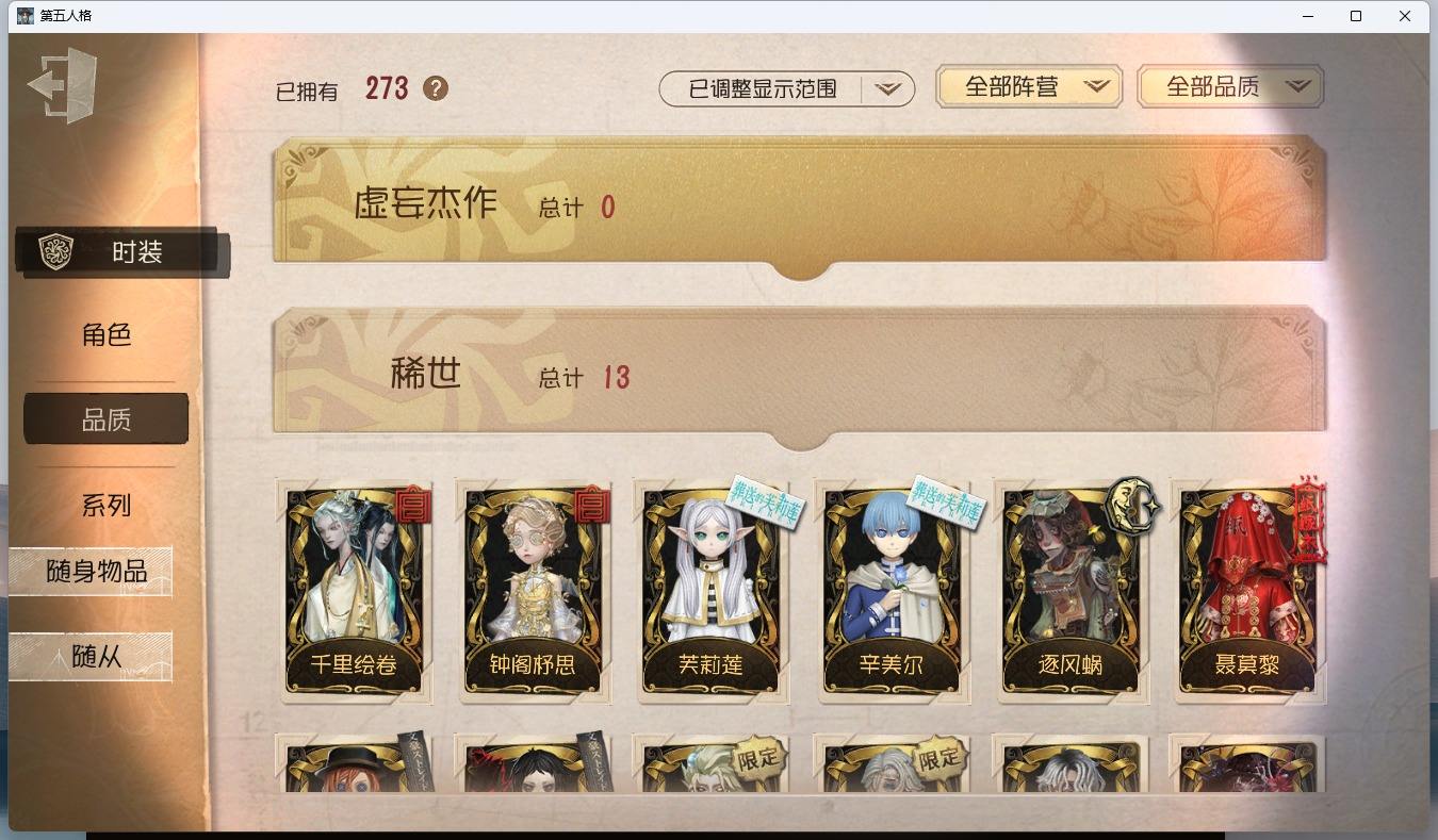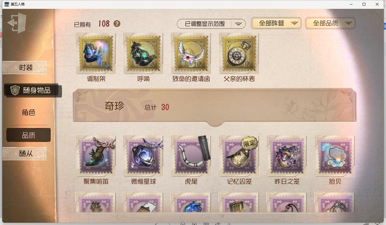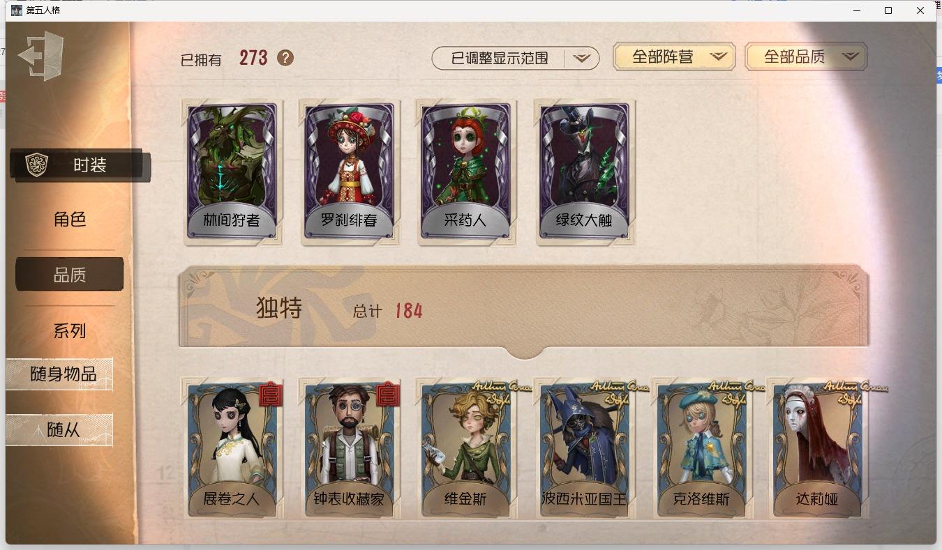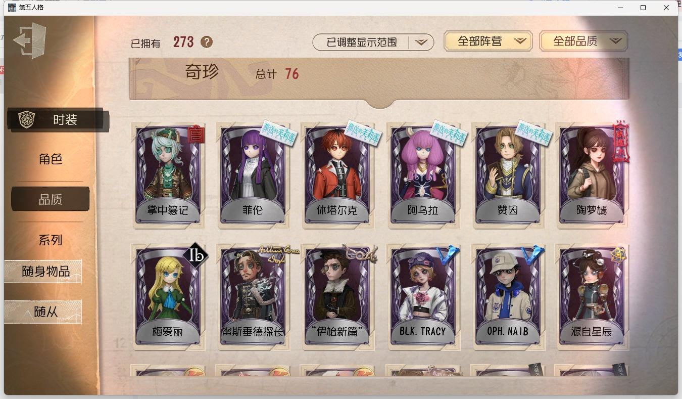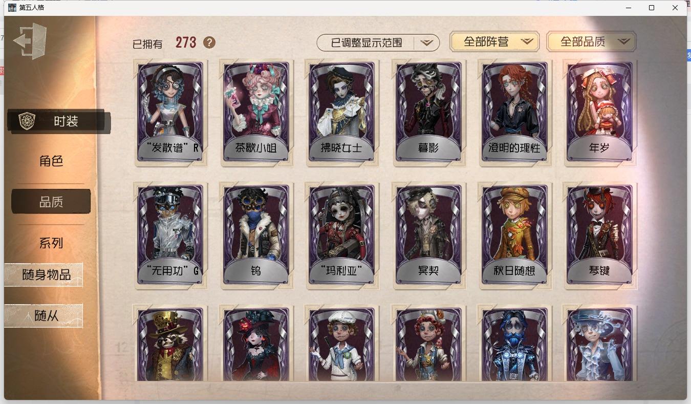 [14349997]苹果官服 邮箱账号 1虚妄杰作 243时装 13金皮 70紫皮 18随从 101随身物品 【时装】:古董商-招风旗,渔女-垂泪的神女,使徒-多加雷萨,小说家-最原终一,画家-温暖的平安夜,古董商-木兰,园丁-异想Hello Kitty,爱哭鬼-摩诺,渔女-百万人鱼,律师-亚伯拉罕·葛雷,祭司-“绯”,渔女-Chef K,古董商-填海平,邮差-秋日随想,“囚徒”-天海兰太郎,调香师-提炼师,古董商-黑鸦,咒术师-椰香假日,杂技演员-雨宫莲,杂技演员-JOKER,空军-爱神之吻,记者-伊布,红蝶-融化的泪琥珀,大副-雷斯垂德探长,雕刻家-善忘的海马体,骑士-艺术品商人,爱哭鬼-善恶的本性,教授-吟游诗人,画家-掌中篆记,26号守卫-秘密大厨,小说家-无归的昨日,冒险家-赞因,“法罗女士”-向深处求告,魔术师-动力芯,幸运儿-蛋小黄的好朋友,古董商-墨韵,宿伞之魂-桃面书生,摄影师-“琥珀”,勘探员-盛夏飞盘,“法罗女士”-VIOLET,古董商-菌丝研究,先知-纯白之盐,调酒师-逐浪的玫瑰,“法罗女士”-芳泽霞,“小女孩”-异动指针,小说家-“伊始新篇”,园丁-郁金香之梦,破轮-沙滩漂移,蜡像师-收藏品,空军-新岛真,空军-QUEEN,祭司-“朝圣者”,机械师-佐仓双叶,空军-“苏珊娜”,蜡像师-淋浴,魔术师-梅林,昆虫学者-可妮兔,“杰克”-夜来香,大副-明智吾郎,“噩梦”-随机数,红蝶-仙鹤,红蝶-彼岸,红蝶-更纱,红夫人-贝拉夫人,红蝶-竹华,舞女-高卷杏,舞女-女武神,舞女-PANTHER,调香师-致命温柔,调香师-Lady K,调香师-红菱艳,调香师-摩涅莫绪涅之梦,调香师-花序,园丁-奥村春,先知-月相,“小女孩”-年岁,前锋-坂本龙司,盲女-海西遗风,梦之女巫-川上富江,摄影师-月下绅士,入殓师-喜多川祐介【随身物品】:荣光的残像(稀世),茅龙书(稀世),夏(稀世),遗忘之花(稀世),火火火(奇珍),指挥(奇珍),海岸花环(奇珍),海之低语(奇珍),集邮册(奇珍),回旋镖(奇珍),炸药桶(奇珍),“全熟”(奇珍),凝固的声音(奇珍),漂浮(奇珍),充气海豚(奇珍),沙漠精灵(奇珍),咖啡壶(稀世),德米特里1号(奇珍),聚集哨笛(奇珍),手摇铃(奇珍),酩酊(奇珍),心海之梦(奇珍),欢呼(奇珍),糖果鬼(奇珍),秘密(奇珍),折柳(稀世),海底遗物(奇[13739442]苹果官服 邮箱账号 208时装 15金皮 63紫皮 8随从 78随身物品 【时装】:守夜人-KNIGHT-c3,破轮-胡桃夹子,勘探员-盖提亚之遗,飞行家-异相睡眠,小丑-捣蛋裘克,爱哭鬼-摩诺,作曲家-幽灵帆,舞女-西尔菲德,佣兵-中岛敦,园丁-宇宙女巫,杂技演员-茶话会,记者-华生小姐,“囚徒”-OPH.LUCA,骑士-Mentor K,教授-吟游诗人,病患-溯光,“杰克”-加里,雕刻家-善忘的海马体,邮差-华生医生,小丑-OPH.JOKER,邮差-潘塔龙,小说家-“伊始新篇”,哭泣小丑-熄灭的太阳,“法罗女士”-芳泽霞,时空之影-“有机磷”,入殓师-“温室”,“记录员”-删除符,击球手-迫降专家,哭泣小丑-炮弹飞船,勘探员-中原中也,爱哭鬼-雪上小王子,红夫人-女大公,画家-江户川乱步,红蝶-更纱,舞女-高卷杏,调酒师-海盐特调,幸运儿-双一,小丑-变脸王,魔术师-广津柳浪,梦之女巫-信使,前锋-SKULL,梦之女巫-川上富江,前锋-坂本龙司,摄影师-宿醉,“囚徒”-太宰治