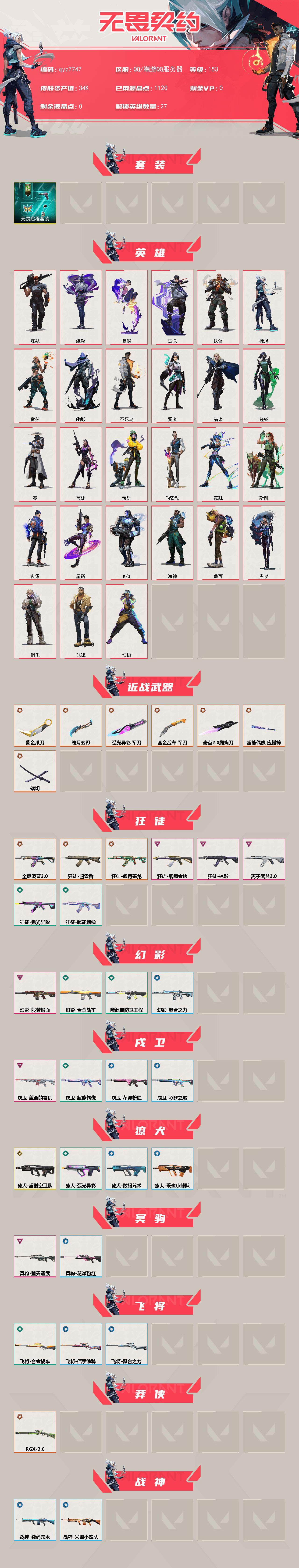 [14434076]Q192336 无畏契约/等级35/段位白银/英雄11/皮肤1/资产1290/已使用R点75/剩余R点175/紫阙金琅-狂徒