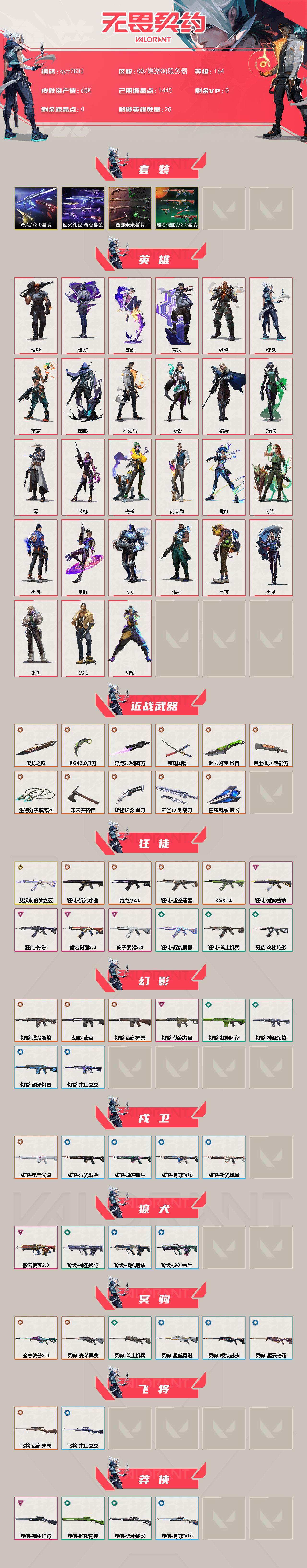 [14434076]Q192336 无畏契约/等级35/段位白银/英雄11/皮肤1/资产1290/已使用R点75/剩余R点175/紫阙金琅-狂徒