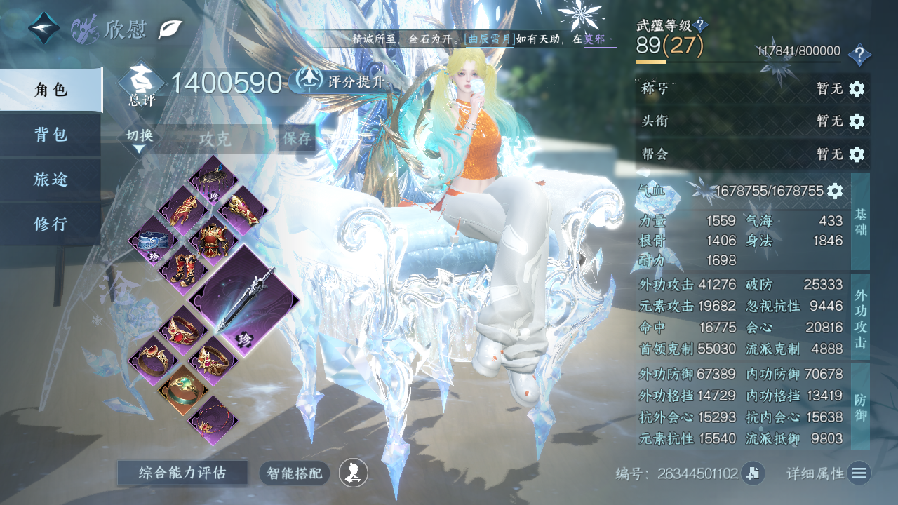【T0瑶光高进度小号 转盘头微光+狐狸绝技+号内192W铜 41套288 两个手饰外观】 战力值139.78 总评139.78 角色等级89 衣品值205600 国色值38840 已用天赏石9 【网易手机账号】 【无换绑冷却】 【潮光】 【女】 【5级】 【把酒临风】 【互通】 转盘外观1 天赏外观8 天赏灵宠1 祥瑞坐骑26 商城外观68 武器环身1 配饰1 转盘外观:微光; 天赏外观:锦夜行,殊威,含曜,灵蔓,长乐,九霄,火焰武器,绯烟香袅; 天赏灵宠:灵宠·璇玑星; 祥瑞坐骑:呆宝,布丁,风行·江湖景,风行·世间情,风行·万灯明,龙衔瑞焰,金冠鼠鼠,纵风甲车·赤,星河转·金夕,星河转·赤夜,伯力,咩郎,墨流云·玄色,赤龙驹,奔虹赤,彩虹小马,踏歌行夜,帝皇驹,犬威哮月,犬威哮月·沧,玉霄飞练,梅香团子,绒绒夜,隐云涧,逍遥游,空山闲; 商城外观:猩红猎夜,赤乌驰阙,粉蔷曳风,雾都往事,烟雨裁春,苍蓝微风,逸夏浮澜,焕曜旋煌,曦凤嘉煌,修月碧海,绯夜誓语,血宴风华,鸿福昭运,灵娲泽生,神戬天威,珊枝琢浪,朝歌旧梦,飞叶若依,天籁闻歌,晶梦绮舞,跃动心芒,朔雪从风,逍遥千风,蝎影度月,云腾游雾,幽蝶眠花,侠影流霜,灵语星彩,幻梦巡礼,绯月狼舞,白夜俘获,凤亭疏香,悬蛛结心,川峦游墨,芳汀花影,空冥铃语,云汉逢夕,难负君思,星蝶离火,帝皇铠甲,斗墨金枢,玄喵夜行,鳞纱幻海,星宫遐音,贪狼摄星,开阳执戈,衣香鬓影,瀚渊龙炎,玉泽凌烟,金粉绮梦,烽火浮生,赤狐魅语,圣月澄空,醉墨狂歌,天纵红颜,林泽清瑶,广寒游仙,苍龙云岫,鱼龙灵泽,白灵雪魅,灵鹿瑶羽,青玉引,舞乐火霓,极夜天曦,曼珠罗玉,鸢蔷画袖,白羽武器,轻功诀伞梦; 武器环身:剑渡东海; 配饰:灵尾绰;