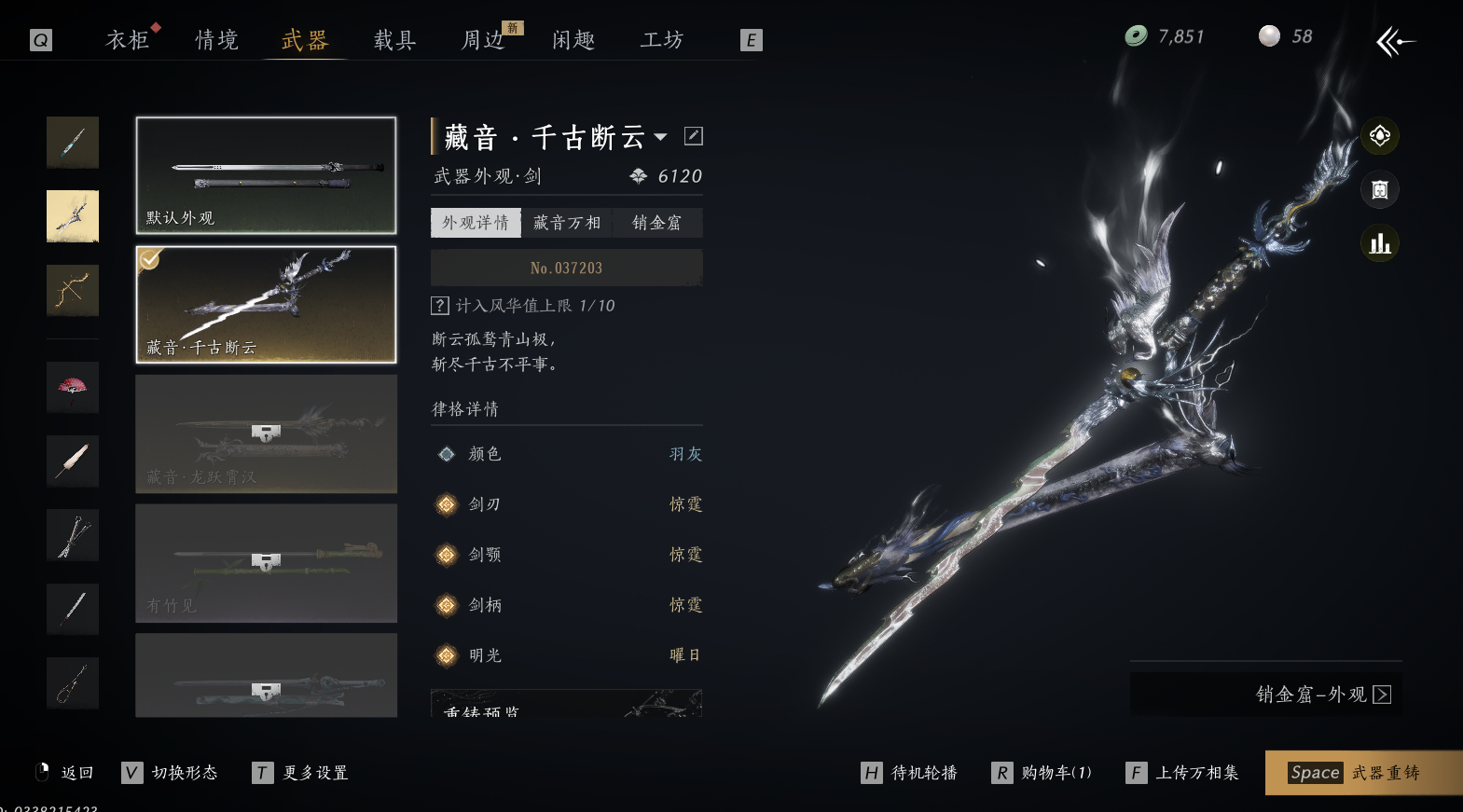 商品描述:XY-076659189 【四金武器不可封装】 风华值25636 武林造诣(鹅)32830 已用八音窍数量4 等级98 角色性别【文本】男 【绝境】 【无换绑CD】 【未绑定或可换绑】 【未注册】 【男】 【是】 【是】 稀有套装3 稀有武器外观1 稀有武学奇术3 套装8 坐骑1 稀有套装:如碎霜天,葬花吟,晏平生; 稀有武器外观:藏音·千古断云; 稀有武学奇术:万剑归宗,鳞跃天倾,黄龙断戟; 套装:青玉案,鹊踏枝,遥夜行,剑影藏心,松花玉兰,射虎南山,清河强者,梨花泪; 坐骑:烬花舆;