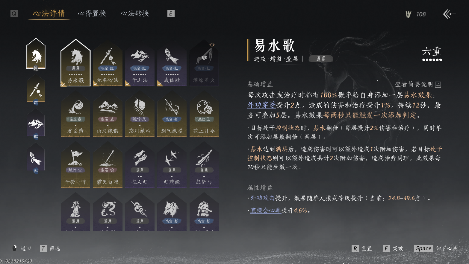 XY-076645101 风华值39611 武林造诣(鹅)34120 已用八音窍数量8 未用八音窍数量0 等级100 角色性别【文本】男 【绝境】 【无换绑CD】 【未注册】 【男】 【是】 【是】