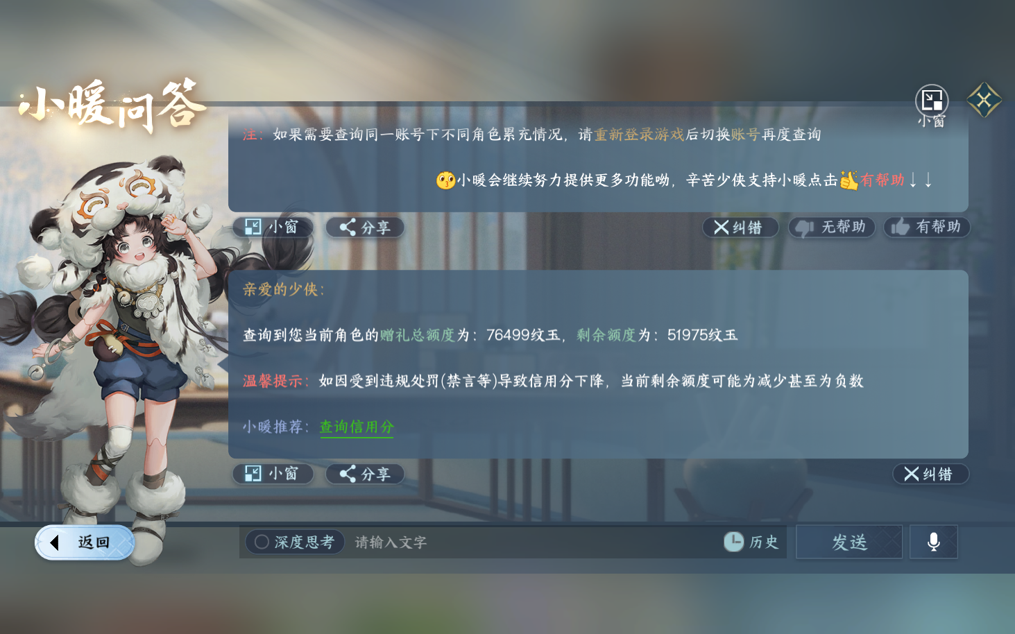 XY-076666979 战力值1012000 总评1012000 角色等级89 衣品值101790 国色值12870 已用天赏石4 【网易手机账号】 【有换绑冷却】 【龙吟】 【女】 【2级】 【无防沉迷】 【把酒临风】 【互通】 天赏外观4 祥瑞坐骑14 商城外观22 天赏外观:觅萤,绯玉枝,鳞川,绯烟香袅; 祥瑞坐骑:风行·江湖景,风行·世间情,龙衔瑞焰,风行·万灯明,金冠鼠鼠,粉黛娇,骋风叱焰,奔虹赤,犬威哮月·沧,玉霄飞练,花花团子,梅香团子,牛奶酥,隐云涧; 商城外观:猩红猎夜,羽信絮梦,绯月狼舞,白露惑心,巧影逐光,音律织光,朝歌旧梦,飞叶若依,晶梦绮舞,灵珠饮月,闻鹤九皋,蝎影度月,灵语星彩,凤亭疏香,云汉逢夕,难负君思,星宫遐音,赤狐魅语,林泽清瑶,白灵雪魅,春灯裁蝶,轻功诀伞梦;
