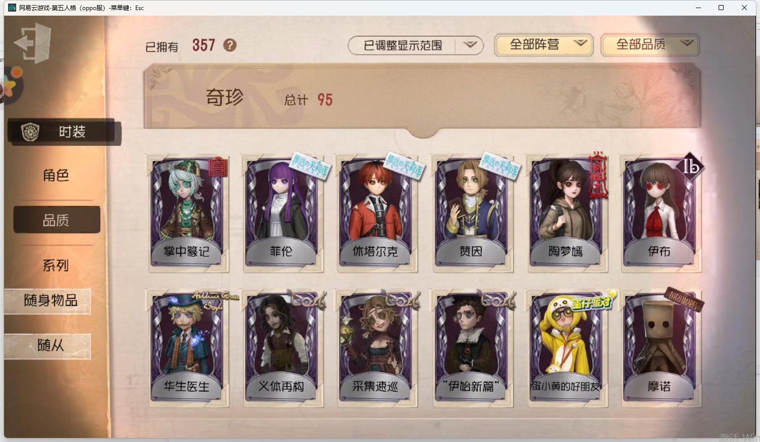 [13735818]OPPO-非账号转移 手机账号 357时装 11金皮 95紫皮 18随从 136随身物品 【时装】:园丁-源自星辰,使徒-多加雷萨,黄衣之主-灾厄之主,勘探员-盖提亚之遗,律师-亚伯拉罕·葛雷,破轮-胡桃夹子,心理学家-长夜,幸运儿-星航之旅,咒术师-灰烬狂想,园丁-异想Hello Kitty,先知-四月一日君寻,爱哭鬼-摩诺,“愚人金”-罪恶熔火,作曲家-先驱探索,鹿头-闻雷爪,“囚徒”-天海兰太郎,空军-爱神之吻,作曲家-猎龙者,病患-溯光,记者-伊布,孽蜥-耶梦加得,杂技演员-李天辰,邮差-华生医生,雕刻家-善忘的海马体,画家-掌中篆记,古董商-陶梦嫣,隐士-薄金 ,病患-休塔尔克,心理学家-菲伦,冒险家-赞因,调酒师-逐浪的玫瑰,幸运儿-蛋小黄的好朋友,邮差-潘塔龙,教授-紧急运输,邮差-报纸怪客,画家-多色印刷,拉拉队员-采集速巡,木偶师-义体再构,小说家-“伊始新篇”,击球手-迫降专家,哭泣小丑-炮弹飞船,画家-江户川乱步,魔术师-广津柳浪,盲女-海女巫,“囚徒”-灵犀妙探,入殓师-菲尼克斯[13739442]苹果官服 邮箱账号 208时装 15金皮 63紫皮 8随从 78随身物品 【时装】:守夜人-KNIGHT-c3,破轮-胡桃夹子,勘探员-盖提亚之遗,飞行家-异相睡眠,小丑-捣蛋裘克,爱哭鬼-摩诺,作曲家-幽灵帆,舞女-西尔菲德,佣兵-中岛敦,园丁-宇宙女巫,杂技演员-茶话会,记者-华生小姐,“囚徒”-OPH.LUCA,骑士-Mentor K,教授-吟游诗人,病患-溯光,“杰克”-加里,雕刻家-善忘的海马体,邮差-华生医生,小丑-OPH.JOKER,邮差-潘塔龙,小说家-“伊始新篇”,哭泣小丑-熄灭的太阳,“法罗女士”-芳泽霞,时空之影-“有机磷”,入殓师-“温室”,“记录员”-删除符,击球手-迫降专家,哭泣小丑-炮弹飞船,勘探员-中原中也,爱哭鬼-雪上小王子,红夫人-女大公,画家-江户川乱步,红蝶-更纱,舞女-高卷杏,调酒师-海盐特调,幸运儿-双一,小丑-变脸王,魔术师-广津柳浪,梦之女巫-信使,前锋-SKULL,梦之女巫-川上富江,前锋-坂本龙司,摄影师-宿醉,“囚徒”-太宰治