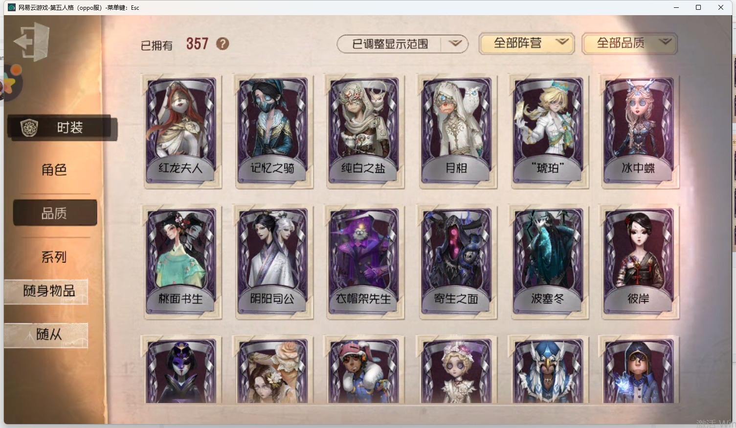 [13739658]哔哩哔哩 手机账号 330时装 25金皮 86紫皮 7随从 110随身物品 【时装】:宿伞之魂-粲然的北辰,心理学家-长夜,佣兵-赤井秀一,记者-永恒,蜘蛛-花祭,“心理学家”-末世搜救,勘探员-枭徒,冒险家-赞因,心理学家-菲伦,空军-尼德霍格,空军-寒香舞,空军-毛利兰,祭司-引路人,律师-毛利小五郎,昆虫学者-索菲亚,昆虫学者-黑女巫,26号守卫-黑白熊,“博士”-征服,红夫人-夜潮,画家-江户川乱步,“杰克”-盛宴伯爵,“杰克”-忘川渡人,红夫人-贝拉夫人,红蝶-白无垢,黄衣之主-死灵师,红夫人-赤宴,医生-试运者,调酒师-贝尔摩德,调香师-今夜不再,调香师-灰原哀,医生-罪木蜜柑,先知-怪盗基德,前锋-SKULL,梦之女巫-川上富江,前锋-服部平次,摄影师-亚兹拉尔,前锋-霓虹先锋,入殓师-安室透