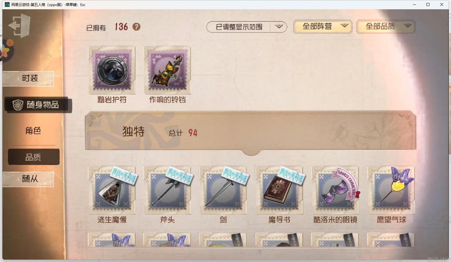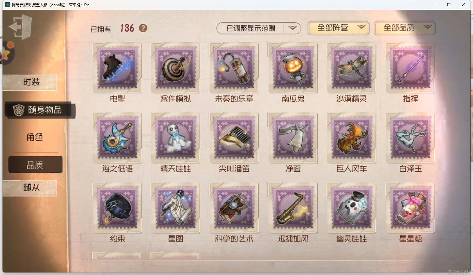 [13699808]安卓官服 手机账号 145时装 8金皮 37紫皮 12随从 37随身物品 【时装】:歌剧演员-幕外之音,作曲家-幽灵帆,爱丽丝·德罗斯-片刻闲暇,渔女-Chef K,调香师-提炼师,咒术师-噩之牙,作曲家-澄明的理性,骑士-Mentor K,骑士-艺术品商人,园丁-郁金香之梦,医生-司药,红蝶-硫火,调香师-Buffy,医生-永生花,小说家-“伊始新篇”,拉拉队员-采集速巡,宿伞之魂-桃面书生,祭司-“朝圣者”,教授-温泉煮酒,祭司-梦之使者,蜡像师-淋浴,昆虫学者-可妮兔,红夫人-女大公,画家-江户川乱步,红夫人-贝拉夫人,红蝶-白无垢,红蝶-更纱,调酒师-海盐特调,舞女-香薰桑拿,调香师-笼中之蝶,调香师-冰上舞蹈,调香师-致命温柔,调香师-今夜不再,调香师-Lady K,小提琴家-孤月骑士,医生-往昔,“使徒”-校监夫人,冒险家-爱丽丝,宿伞之魂-安魂曲【随身物品】:遗忘之花(稀世),沙滩镜(奇珍),月光(奇珍),记忆囚笼(奇珍),酩酊(奇珍),折柳(稀世),法典(奇珍),旧日征帆(奇珍),玫瑰手杖(蓝)(奇珍),长生(奇珍),焚樱(奇珍),玫瑰之下(稀世),完美人偶(稀世),星云瓶(稀世),小人偶(奇珍),“星辰”(稀世),梦魇结晶(稀世),凝露(奇珍),凝聚之水(奇珍),书中蝶(稀世)