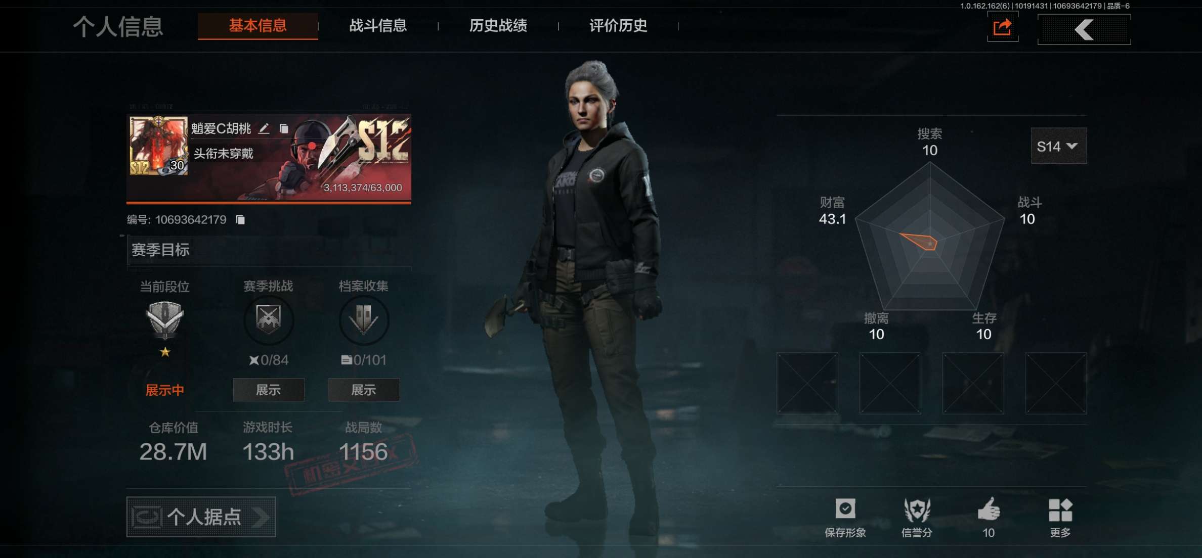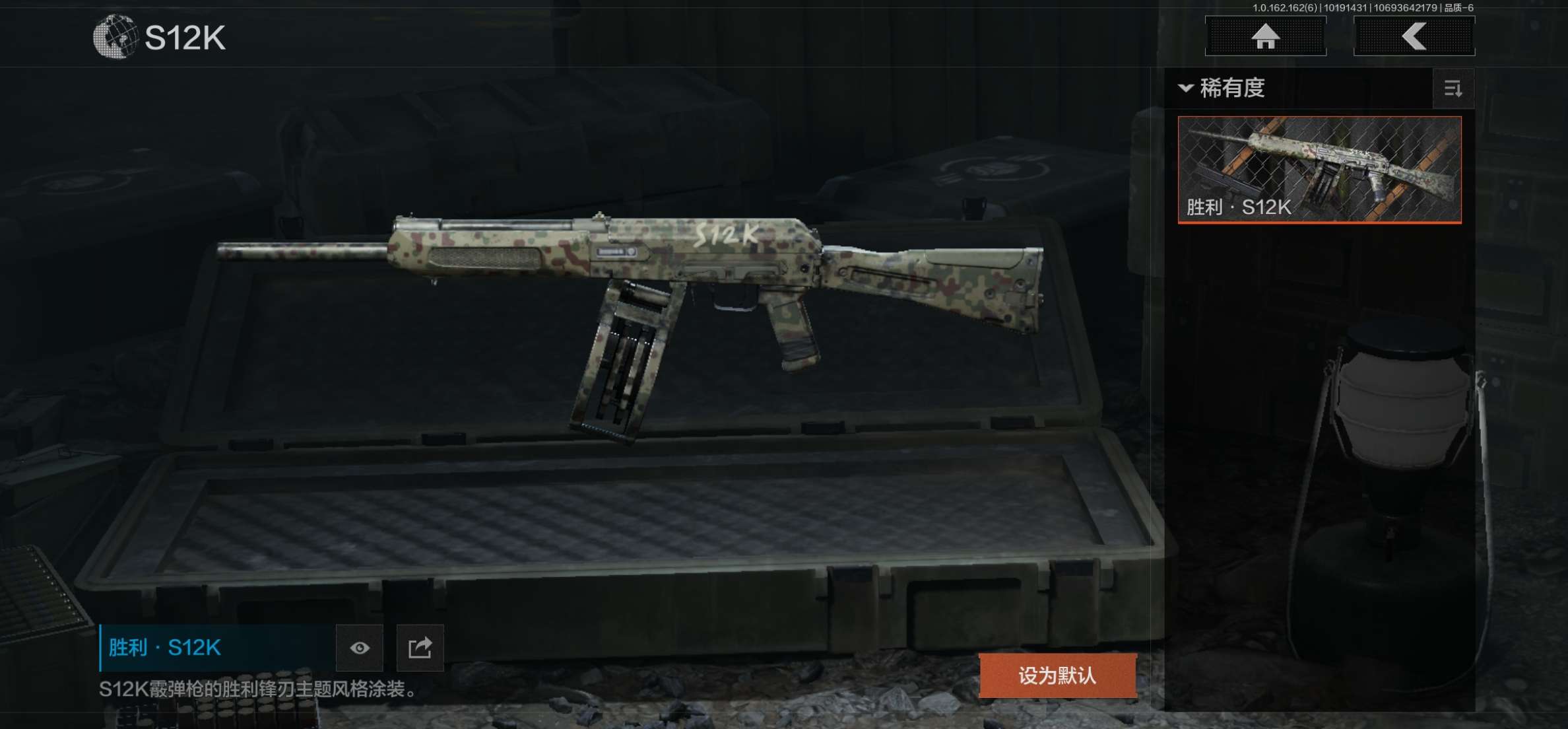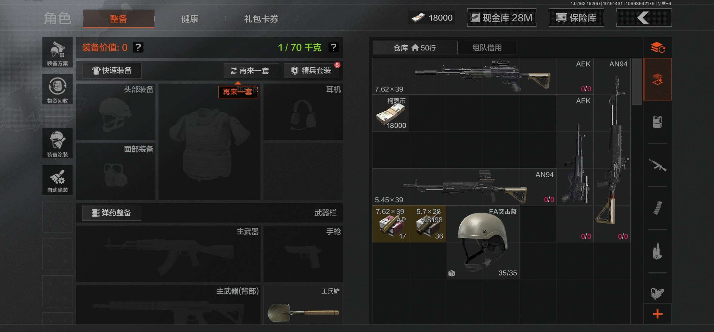 库存价值13.7 1近战武器 7金枪皮 可修改实名 【柯恩币数量】:1848【近战武器】:下弦月【金色枪皮】:告丧夜曲·AUG,旗帜·AEK,棱光裂变·QBU191,告丧夜曲·AR57,旧王圣谕·QBZ191,旧王圣谕·VSS,战术大师·AK102【紫色枪皮】:旗帜·SVDS,棱光裂变·ACE31,棱光裂变·AK74N,棱光裂变·AK102,棱光裂变·AKM,最后防线·AEK,禁止访问·UMP45,北国内卫·AN94,骑士之剑·SJ16,竞技·AUG,炎夏浪花·H416,快乐游戏·M110,典礼武备·M249,典礼武备·14,典礼武备·GROZA,猩红羽翼·VSS,无声暗月·AR57,竞技·M4A1,逆火·MDR,极恶·AUG,湖冰倒影·MP5,缟兵玄墨·MPX,07式林地迷彩·QBZ191,轰炸·AX50,娜迦·RPK16,涂绘猎人·AR57【角色装扮(紫)】:都市夜影套装