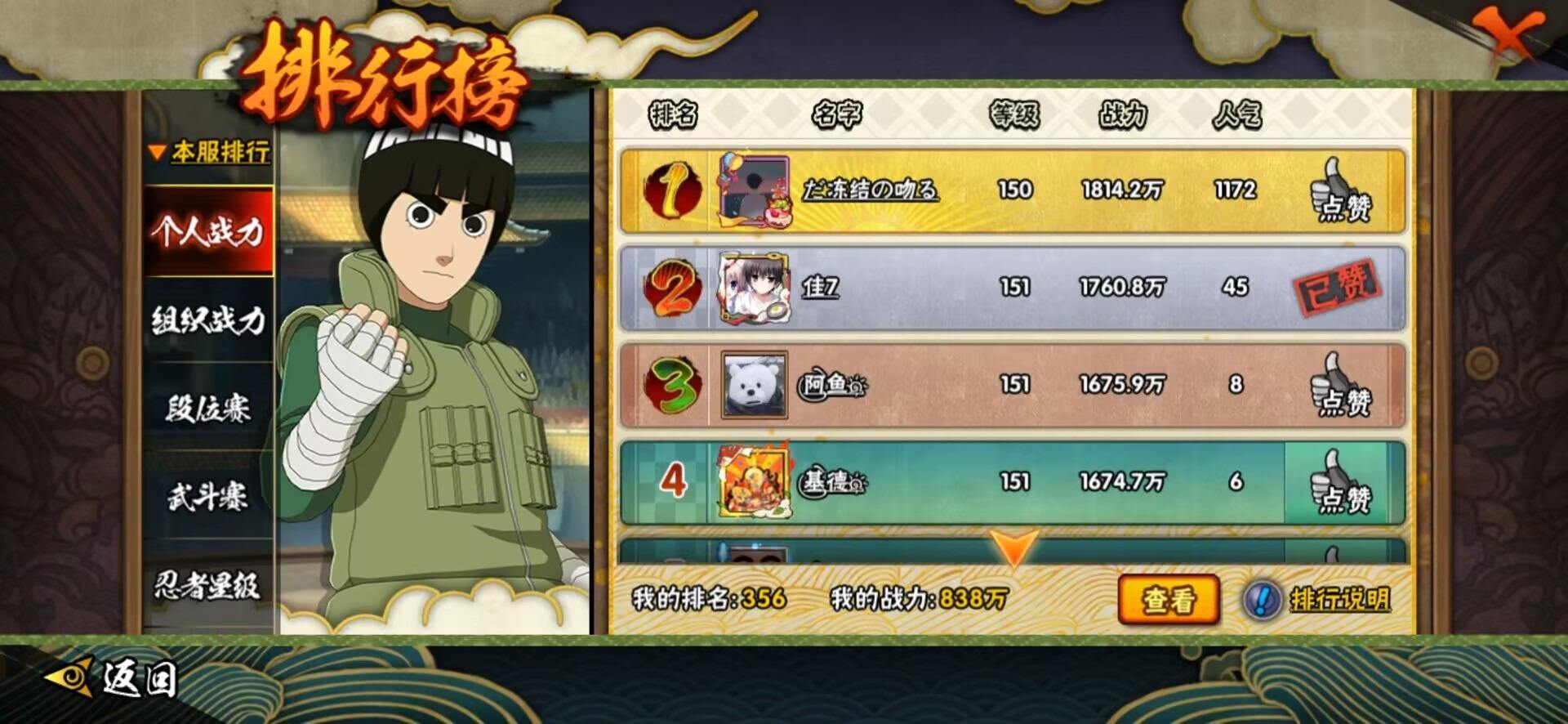 苹果Q708区:可二次实名 VIP15,1524W战力,S忍27个,A忍56个,本服排名22,战区排名未上榜,通灵兽34个,9时装,暗部1阶,忍者星数574