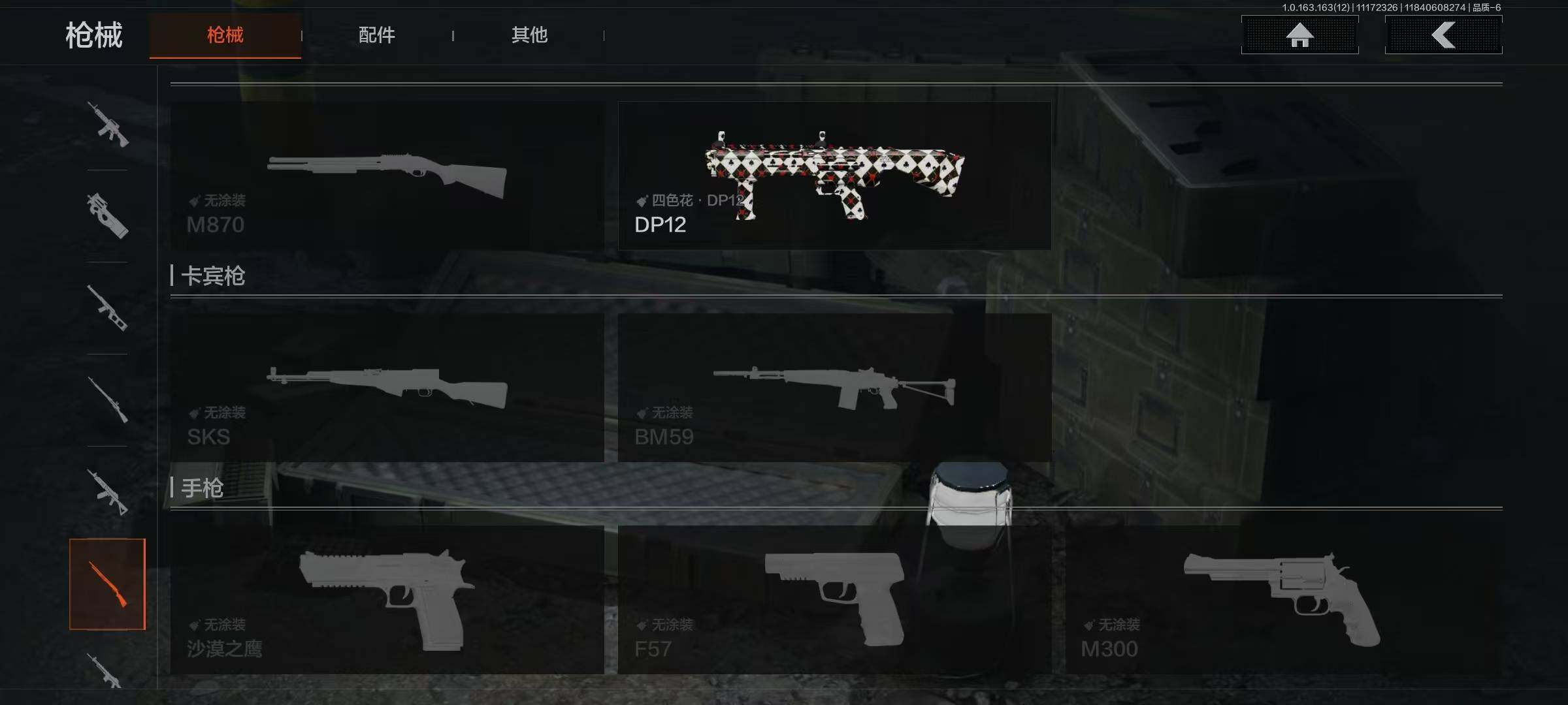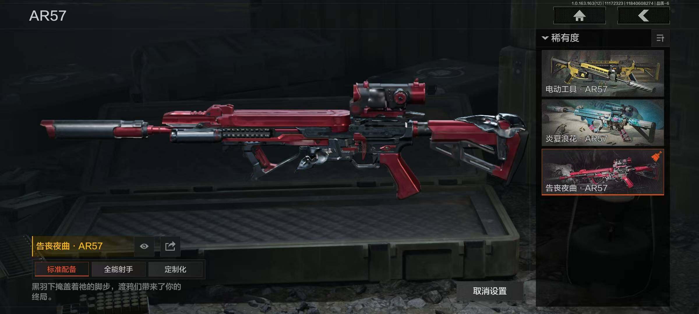 库存价值13.7 1近战武器 7金枪皮 可修改实名 【柯恩币数量】:1848【近战武器】:下弦月【金色枪皮】:告丧夜曲·AUG,旗帜·AEK,棱光裂变·QBU191,告丧夜曲·AR57,旧王圣谕·QBZ191,旧王圣谕·VSS,战术大师·AK102【紫色枪皮】:旗帜·SVDS,棱光裂变·ACE31,棱光裂变·AK74N,棱光裂变·AK102,棱光裂变·AKM,最后防线·AEK,禁止访问·UMP45,北国内卫·AN94,骑士之剑·SJ16,竞技·AUG,炎夏浪花·H416,快乐游戏·M110,典礼武备·M249,典礼武备·14,典礼武备·GROZA,猩红羽翼·VSS,无声暗月·AR57,竞技·M4A1,逆火·MDR,极恶·AUG,湖冰倒影·MP5,缟兵玄墨·MPX,07式林地迷彩·QBZ191,轰炸·AX50,娜迦·RPK16,涂绘猎人·AR57【角色装扮(紫)】:都市夜影套装