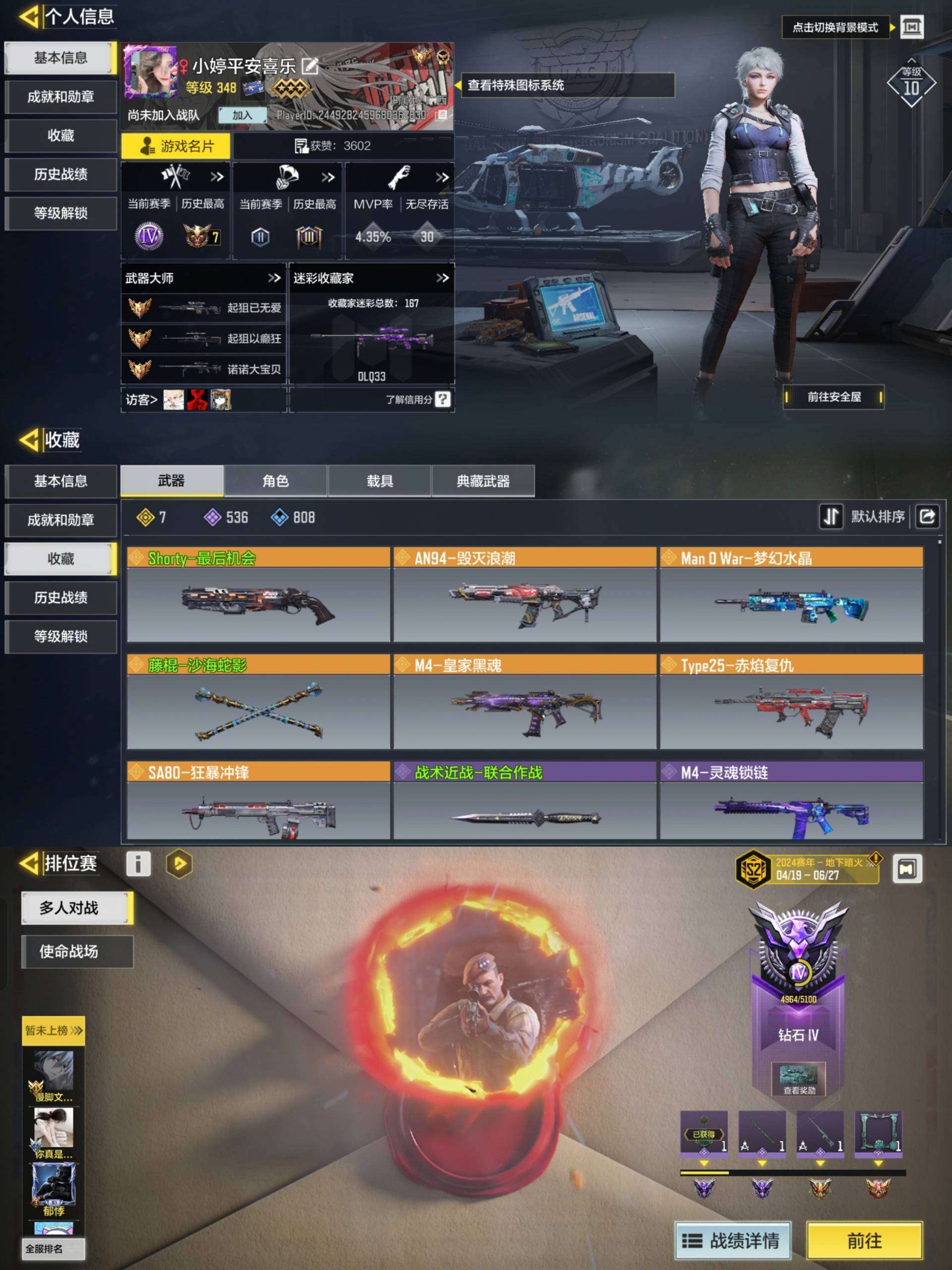 HXS229【2神话4传说】有二次 安q使命 2神话 4传说 角色等级263 段位白银V【2神话 4传说 242史诗枪皮 67史诗角色 26史诗载具】AS VAL-双刃剑圣 DLQ33-红莲天诛 AN94-毁灭浪潮 AK117-炫彩冬日 M4-皇家黑魂 AKBP-塞壬律曲