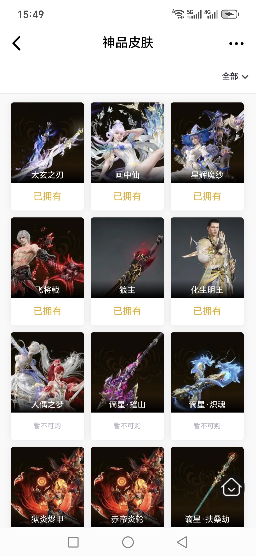 MYJ246【游戏等级】59 6红 9金 画中仙 太玄之刃 飞将戟 星辉魔纱【大区】国服【排位】青铜Ⅴ【神品皮肤】太玄之刃 画中仙 星辉魔纱 飞将戟 狼主 化生明王【极品皮肤】觉明尊者 祸津素盏 寿竹云春 开辟鸿蒙·风雨谐 开辟鸿蒙·金戈止 游四海 红川仙子 瀚海苍鹰 春桃笑MYJ253【8红 46金 如意金箍棒 帝星 飞将乾 通天狐妖 1龙之道】【游戏等级】284【大区】国服【排位】白银Ⅰ【神品皮肤】龙雀 流金晓锦 帝星 飞将戟 通天狐袄 西行劫·如意金箍棒 沙漠香风 狂龙 海之奇【极品皮肤】寿竹云春 开辟鸿蒙·日月明 封神录·申公豹 封神录·姜子牙 观山海·相柳 梨园传奇·柳生 楚韵九歌·云中君 浣烟纱 街头狂欢·涂鸦少女 天工奥妙 日影花阴 斗罗大陆·唐三 观山海·冬神玄冥 观山海·青鸟 观山海·秋神蓐收 沙暴苍狼 夏日派对·长夏清澜 夏日派对·盛夏白阳 观山海·腓腓 夏日派对·弄潮逐浪 游四海 神武 沙狼之怒 清雅少女 逆水寒·江海沧澜 麟鹿大铠 九阴圣女 弘毅袍 瀚海苍鹰 贵胄少女 赤雾烟霞 朝闻道 碧水青天 八宝龙王 西行劫·杨戬 西行劫·紫衣仙子 花之倾奇 百战·断链 神机袍·缤纷 织锦衫·缤纷 2674·争斗洪流 古冢行 信手斩龙 逆水寒·极夜天曦 不良人·李星云 代号·冰凌【龙之道】龙之影·过江龙