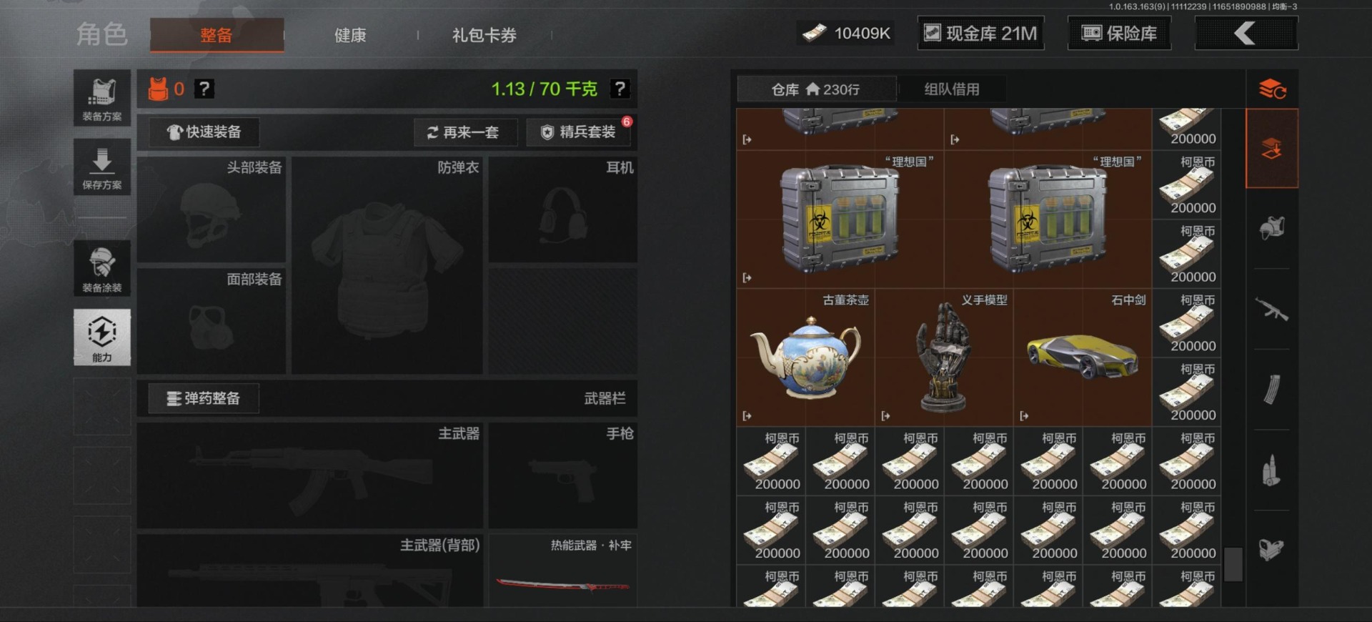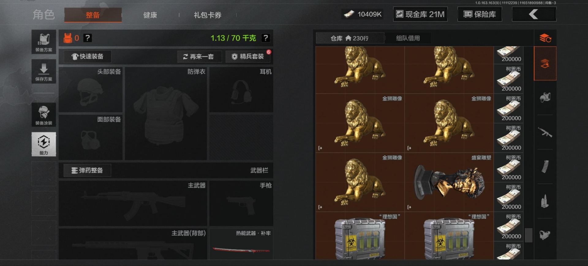 库存价值13.7 1近战武器 7金枪皮 可修改实名 【柯恩币数量】:1848【近战武器】:下弦月【金色枪皮】:告丧夜曲·AUG,旗帜·AEK,棱光裂变·QBU191,告丧夜曲·AR57,旧王圣谕·QBZ191,旧王圣谕·VSS,战术大师·AK102【紫色枪皮】:旗帜·SVDS,棱光裂变·ACE31,棱光裂变·AK74N,棱光裂变·AK102,棱光裂变·AKM,最后防线·AEK,禁止访问·UMP45,北国内卫·AN94,骑士之剑·SJ16,竞技·AUG,炎夏浪花·H416,快乐游戏·M110,典礼武备·M249,典礼武备·14,典礼武备·GROZA,猩红羽翼·VSS,无声暗月·AR57,竞技·M4A1,逆火·MDR,极恶·AUG,湖冰倒影·MP5,缟兵玄墨·MPX,07式林地迷彩·QBZ191,轰炸·AX50,娜迦·RPK16,涂绘猎人·AR57【角色装扮(紫)】:都市夜影套装