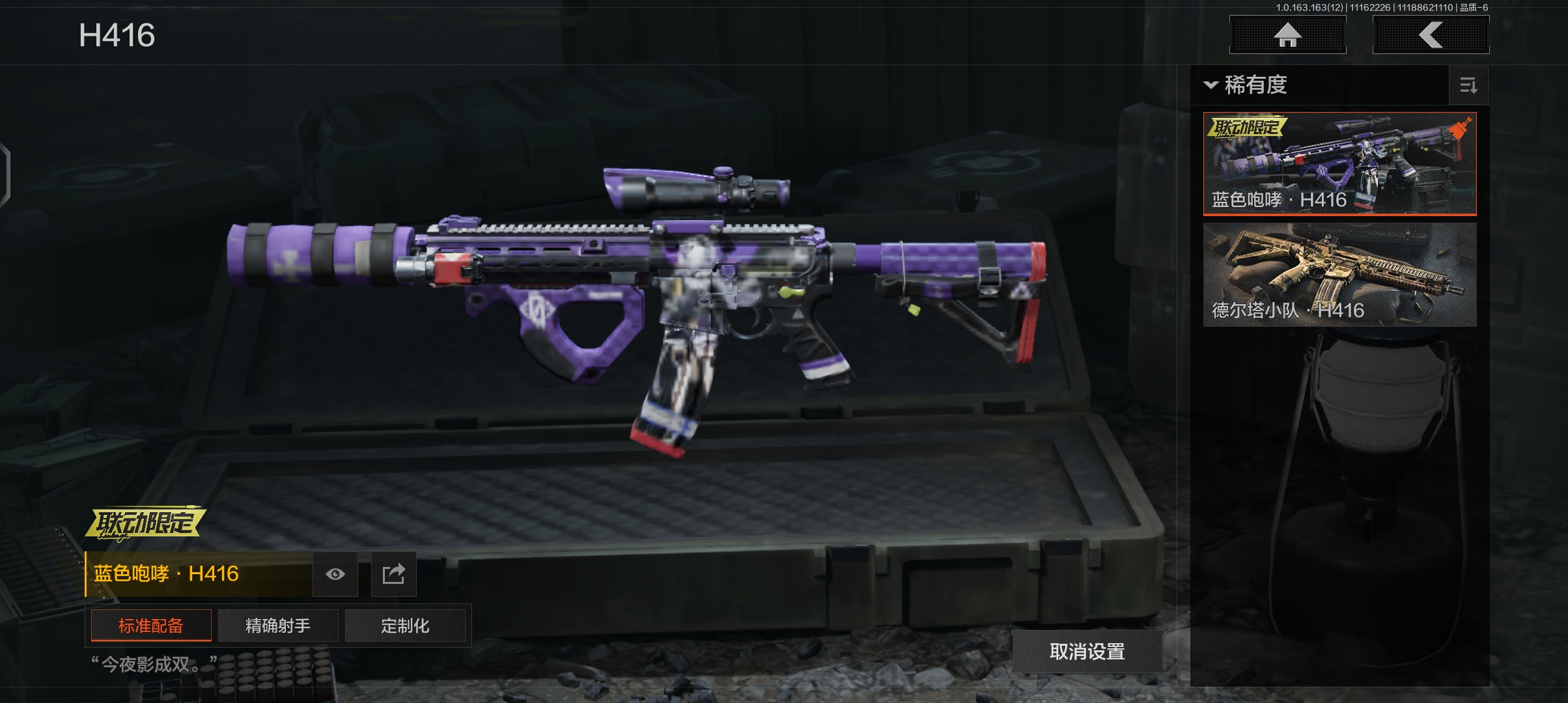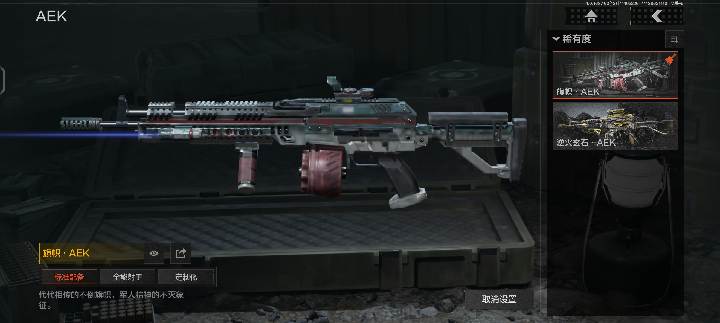 商品描述:DSTW1597安卓Q-等级30-仓库价值1.8m-科恩币109971 【近战武器】 工兵铲 来战·开山刀 野战折刀 【枪皮】 蓝色咆哮·H416 旗帜·AEK