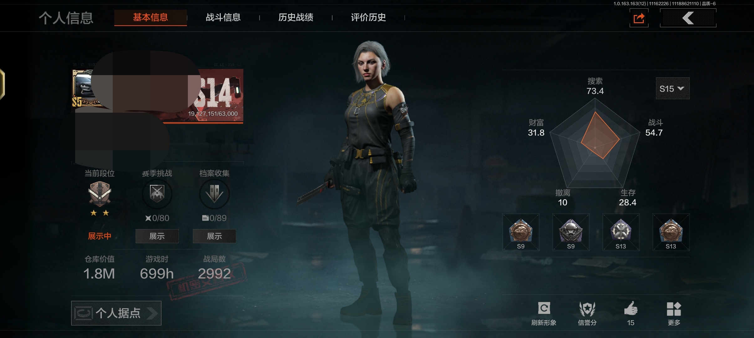 库存价值13.7 1近战武器 7金枪皮 可修改实名 【柯恩币数量】:1848【近战武器】:下弦月【金色枪皮】:告丧夜曲·AUG,旗帜·AEK,棱光裂变·QBU191,告丧夜曲·AR57,旧王圣谕·QBZ191,旧王圣谕·VSS,战术大师·AK102【紫色枪皮】:旗帜·SVDS,棱光裂变·ACE31,棱光裂变·AK74N,棱光裂变·AK102,棱光裂变·AKM,最后防线·AEK,禁止访问·UMP45,北国内卫·AN94,骑士之剑·SJ16,竞技·AUG,炎夏浪花·H416,快乐游戏·M110,典礼武备·M249,典礼武备·14,典礼武备·GROZA,猩红羽翼·VSS,无声暗月·AR57,竞技·M4A1,逆火·MDR,极恶·AUG,湖冰倒影·MP5,缟兵玄墨·MPX,07式林地迷彩·QBZ191,轰炸·AX50,娜迦·RPK16,涂绘猎人·AR57【角色装扮(紫)】:都市夜影套装