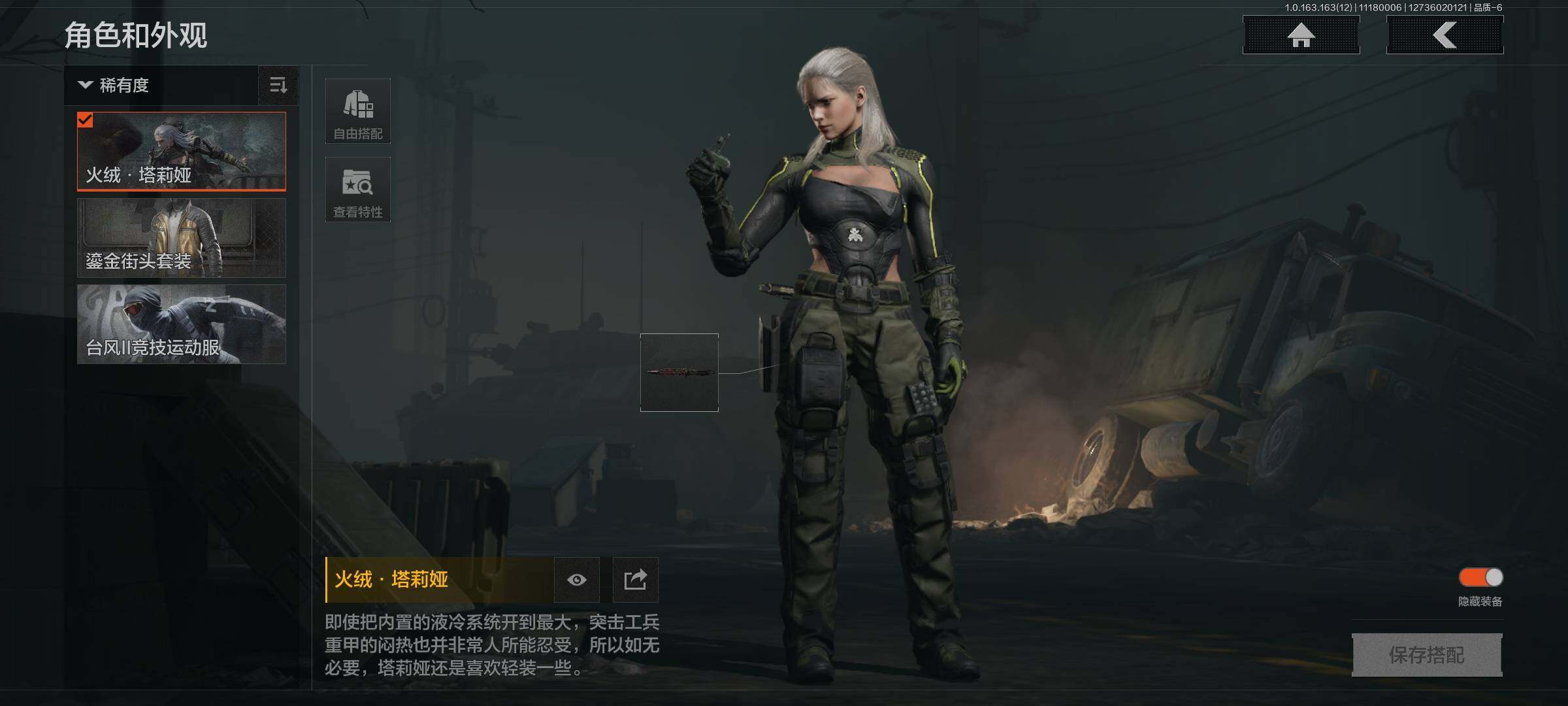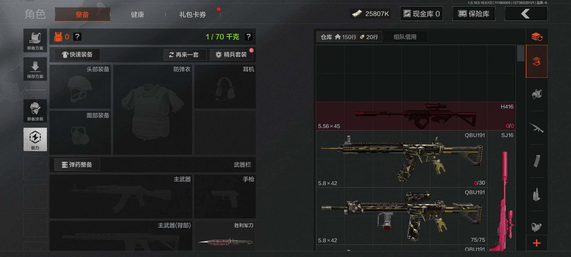 库存价值9.9 5近战武器 1金套装 1金枪皮 可修改实名 【柯恩币数量】:57345【角色装扮(金)】:火绒·塔莉娅【近战武器】:来战·开山刀,瀚星斩铁,工兵铲,涂鸦利刃,裁决手杖剑【金色枪皮】:竞技·FAL【紫色枪皮】:火绒·AK12,棱光裂变·AKM,无畏·USAS12,骑士之剑·SJ16,百锻寒芒·T03,百锻寒芒·T951,竞技·AUG,V·SKS,竞技·MDR,掌中盾·MP5,自喷网格·H416,来战·AK74N,德尔塔小队·M4A1,玄戈梨花·MPX,07式林地迷彩·QBZ191,全地形数码·M110【角色装扮(紫)】:都市夜影套装