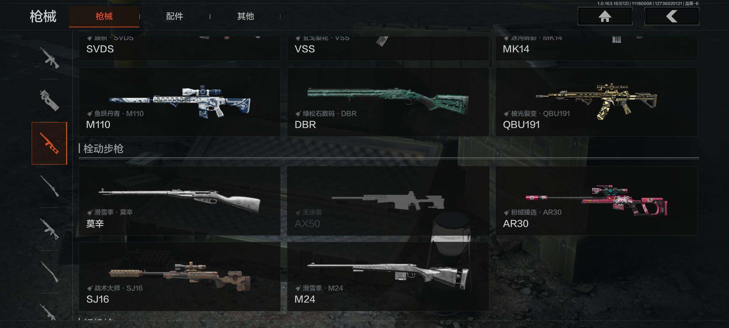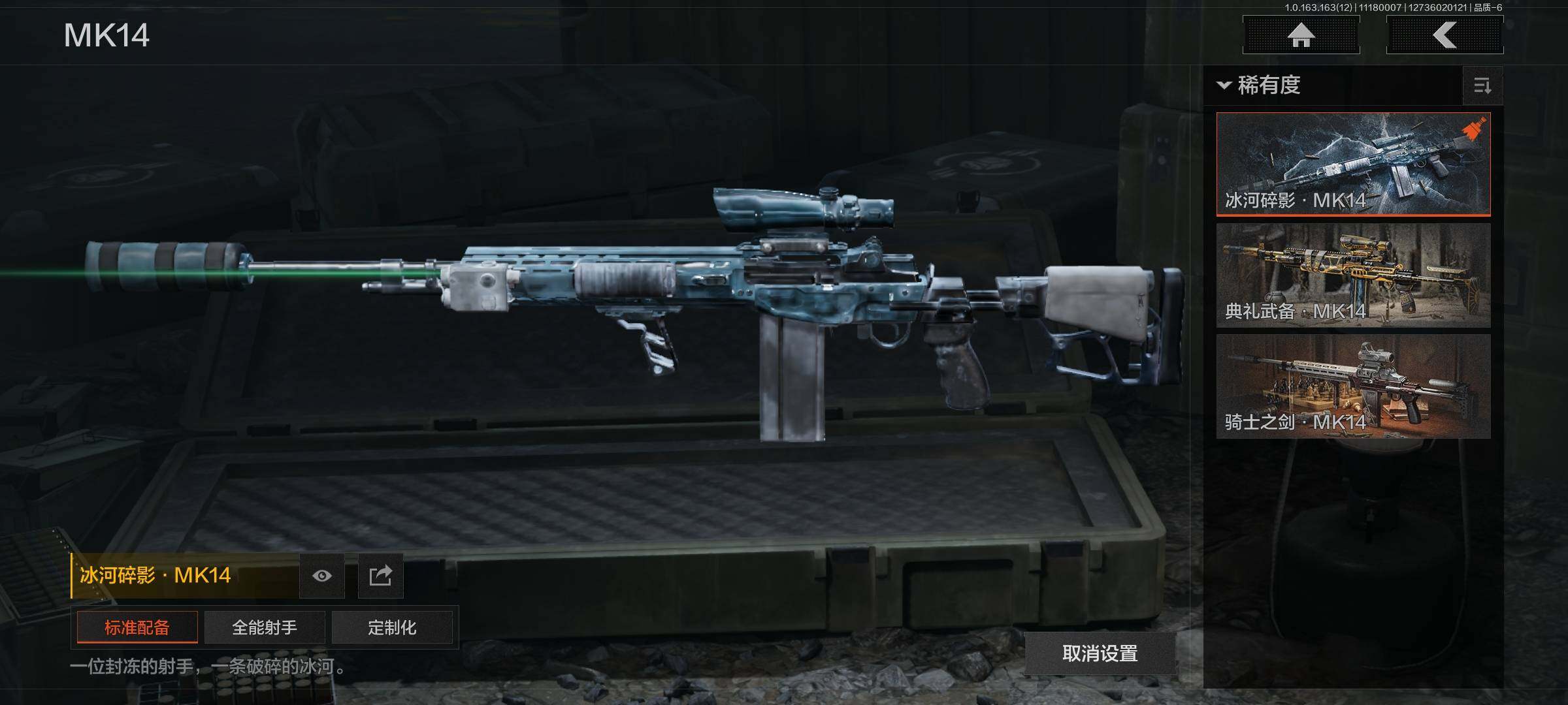 库存价值13.7 1近战武器 7金枪皮 可修改实名 【柯恩币数量】:1848【近战武器】:下弦月【金色枪皮】:告丧夜曲·AUG,旗帜·AEK,棱光裂变·QBU191,告丧夜曲·AR57,旧王圣谕·QBZ191,旧王圣谕·VSS,战术大师·AK102【紫色枪皮】:旗帜·SVDS,棱光裂变·ACE31,棱光裂变·AK74N,棱光裂变·AK102,棱光裂变·AKM,最后防线·AEK,禁止访问·UMP45,北国内卫·AN94,骑士之剑·SJ16,竞技·AUG,炎夏浪花·H416,快乐游戏·M110,典礼武备·M249,典礼武备·14,典礼武备·GROZA,猩红羽翼·VSS,无声暗月·AR57,竞技·M4A1,逆火·MDR,极恶·AUG,湖冰倒影·MP5,缟兵玄墨·MPX,07式林地迷彩·QBZ191,轰炸·AX50,娜迦·RPK16,涂绘猎人·AR57【角色装扮(紫)】:都市夜影套装