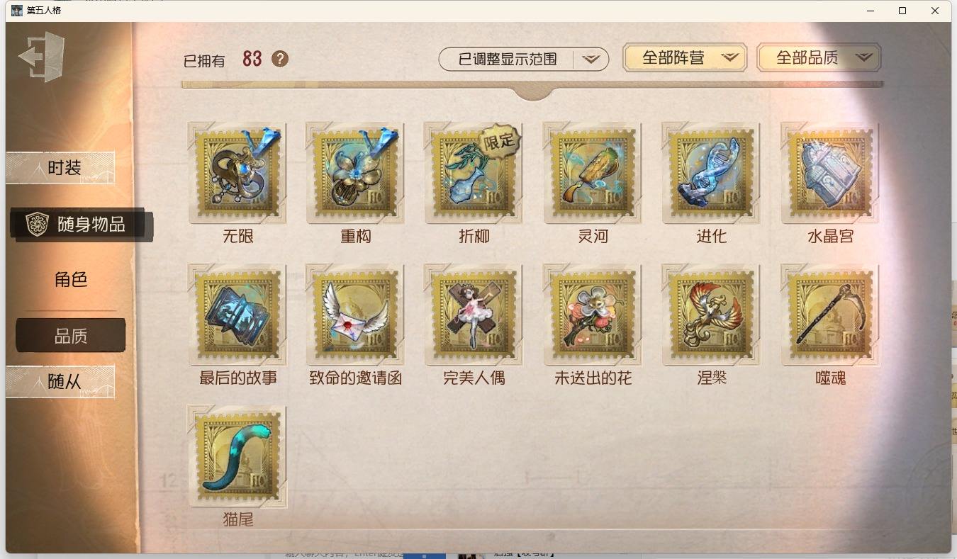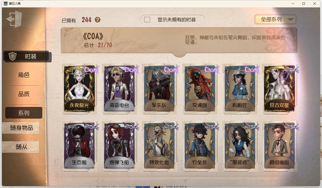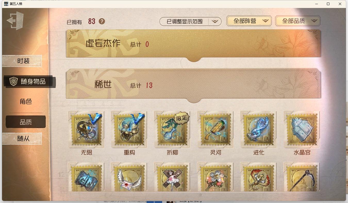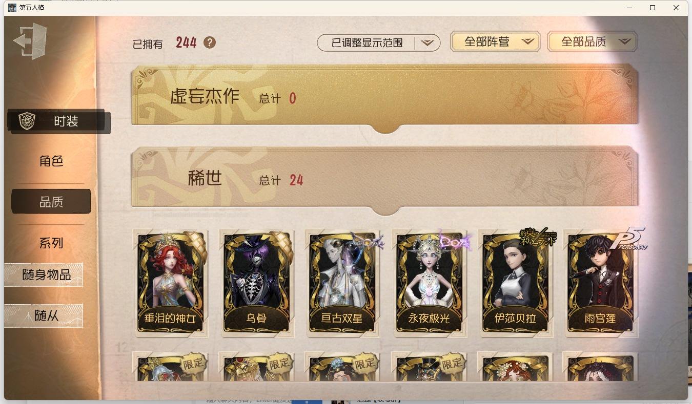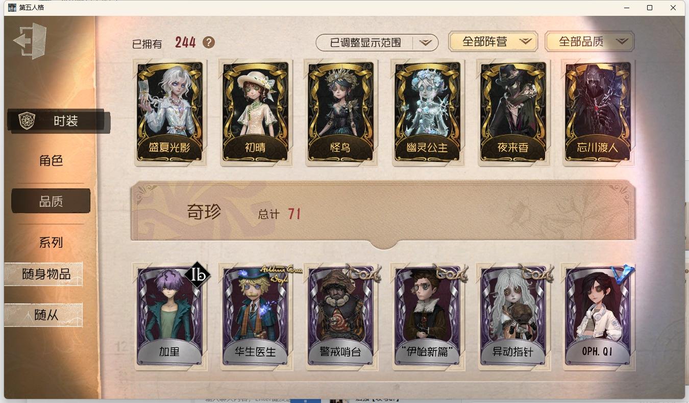 [14349997]苹果官服 邮箱账号 1虚妄杰作 243时装 13金皮 70紫皮 18随从 101随身物品 【时装】:古董商-招风旗,渔女-垂泪的神女,使徒-多加雷萨,小说家-最原终一,画家-温暖的平安夜,古董商-木兰,园丁-异想Hello Kitty,爱哭鬼-摩诺,渔女-百万人鱼,律师-亚伯拉罕·葛雷,祭司-“绯”,渔女-Chef K,古董商-填海平,邮差-秋日随想,“囚徒”-天海兰太郎,调香师-提炼师,古董商-黑鸦,咒术师-椰香假日,杂技演员-雨宫莲,杂技演员-JOKER,空军-爱神之吻,记者-伊布,红蝶-融化的泪琥珀,大副-雷斯垂德探长,雕刻家-善忘的海马体,骑士-艺术品商人,爱哭鬼-善恶的本性,教授-吟游诗人,画家-掌中篆记,26号守卫-秘密大厨,小说家-无归的昨日,冒险家-赞因,“法罗女士”-向深处求告,魔术师-动力芯,幸运儿-蛋小黄的好朋友,古董商-墨韵,宿伞之魂-桃面书生,摄影师-“琥珀”,勘探员-盛夏飞盘,“法罗女士”-VIOLET,古董商-菌丝研究,先知-纯白之盐,调酒师-逐浪的玫瑰,“法罗女士”-芳泽霞,“小女孩”-异动指针,小说家-“伊始新篇”,园丁-郁金香之梦,破轮-沙滩漂移,蜡像师-收藏品,空军-新岛真,空军-QUEEN,祭司-“朝圣者”,机械师-佐仓双叶,空军-“苏珊娜”,蜡像师-淋浴,魔术师-梅林,昆虫学者-可妮兔,“杰克”-夜来香,大副-明智吾郎,“噩梦”-随机数,红蝶-仙鹤,红蝶-彼岸,红蝶-更纱,红夫人-贝拉夫人,红蝶-竹华,舞女-高卷杏,舞女-女武神,舞女-PANTHER,调香师-致命温柔,调香师-Lady K,调香师-红菱艳,调香师-摩涅莫绪涅之梦,调香师-花序,园丁-奥村春,先知-月相,“小女孩”-年岁,前锋-坂本龙司,盲女-海西遗风,梦之女巫-川上富江,摄影师-月下绅士,入殓师-喜多川祐介【随身物品】:荣光的残像(稀世),茅龙书(稀世),夏(稀世),遗忘之花(稀世),火火火(奇珍),指挥(奇珍),海岸花环(奇珍),海之低语(奇珍),集邮册(奇珍),回旋镖(奇珍),炸药桶(奇珍),“全熟”(奇珍),凝固的声音(奇珍),漂浮(奇珍),充气海豚(奇珍),沙漠精灵(奇珍),咖啡壶(稀世),德米特里1号(奇珍),聚集哨笛(奇珍),手摇铃(奇珍),酩酊(奇珍),心海之梦(奇珍),欢呼(奇珍),糖果鬼(奇珍),秘密(奇珍),折柳(稀世),海底遗物(奇[13739442]苹果官服 邮箱账号 208时装 15金皮 63紫皮 8随从 78随身物品 【时装】:守夜人-KNIGHT-c3,破轮-胡桃夹子,勘探员-盖提亚之遗,飞行家-异相睡眠,小丑-捣蛋裘克,爱哭鬼-摩诺,作曲家-幽灵帆,舞女-西尔菲德,佣兵-中岛敦,园丁-宇宙女巫,杂技演员-茶话会,记者-华生小姐,“囚徒”-OPH.LUCA,骑士-Mentor K,教授-吟游诗人,病患-溯光,“杰克”-加里,雕刻家-善忘的海马体,邮差-华生医生,小丑-OPH.JOKER,邮差-潘塔龙,小说家-“伊始新篇”,哭泣小丑-熄灭的太阳,“法罗女士”-芳泽霞,时空之影-“有机磷”,入殓师-“温室”,“记录员”-删除符,击球手-迫降专家,哭泣小丑-炮弹飞船,勘探员-中原中也,爱哭鬼-雪上小王子,红夫人-女大公,画家-江户川乱步,红蝶-更纱,舞女-高卷杏,调酒师-海盐特调,幸运儿-双一,小丑-变脸王,魔术师-广津柳浪,梦之女巫-信使,前锋-SKULL,梦之女巫-川上富江,前锋-坂本龙司,摄影师-宿醉,“囚徒”-太宰治