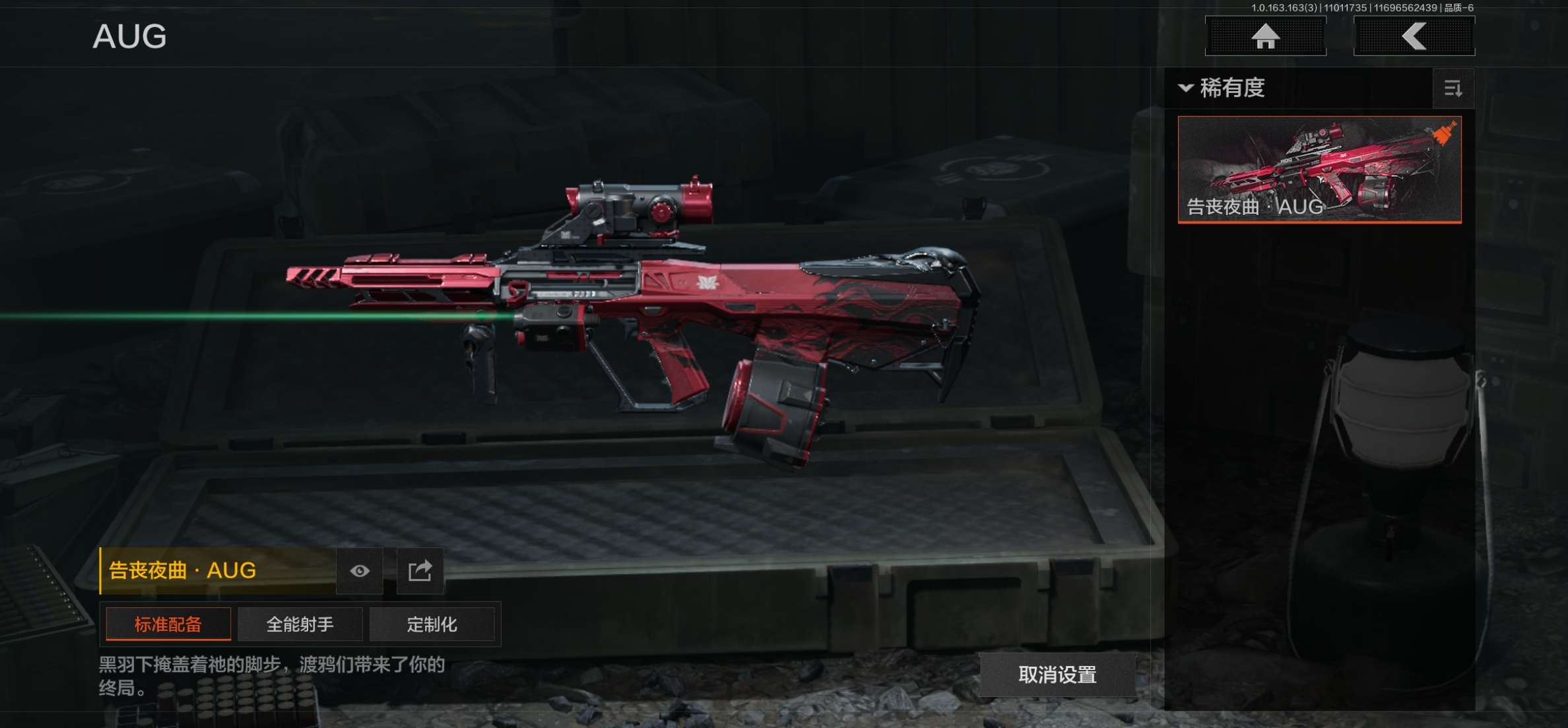 商品描述:AQ374安Q-4金枪-仓库价值19.5-科恩币12787K-1刀皮-可二次【金枪】浮鳞影青·QBZ192 告丧夜曲·AUG 利齿风暴·MPX 旧王圣谕·CSS 【枪皮】猩红抓痕·AKM 胜利·AEK 虎纹·AFMAS 醒目提醒·F2000 绿海猎手·AR15 猩红抓痕·MP5 黑石纹·M3A1 醒目提醒·MP5K 典礼武器·14 猩红抓痕·M24