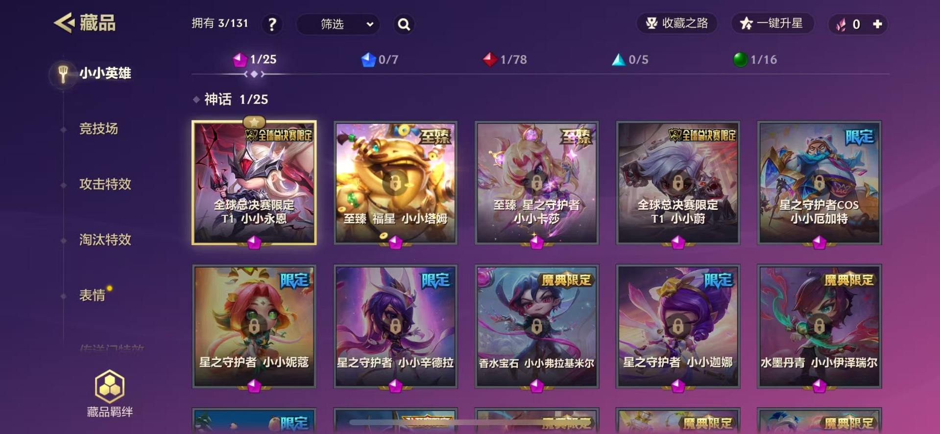 [14773508]【实名】:可修改【角色等级】:39【小小英雄数量】:28【小小英雄(神话)】:至臻 小小亚索,全球总决赛限定 T1 小小蔚,至臻 星辰鳞珑【竞技场(神话)】:幻境竞技场