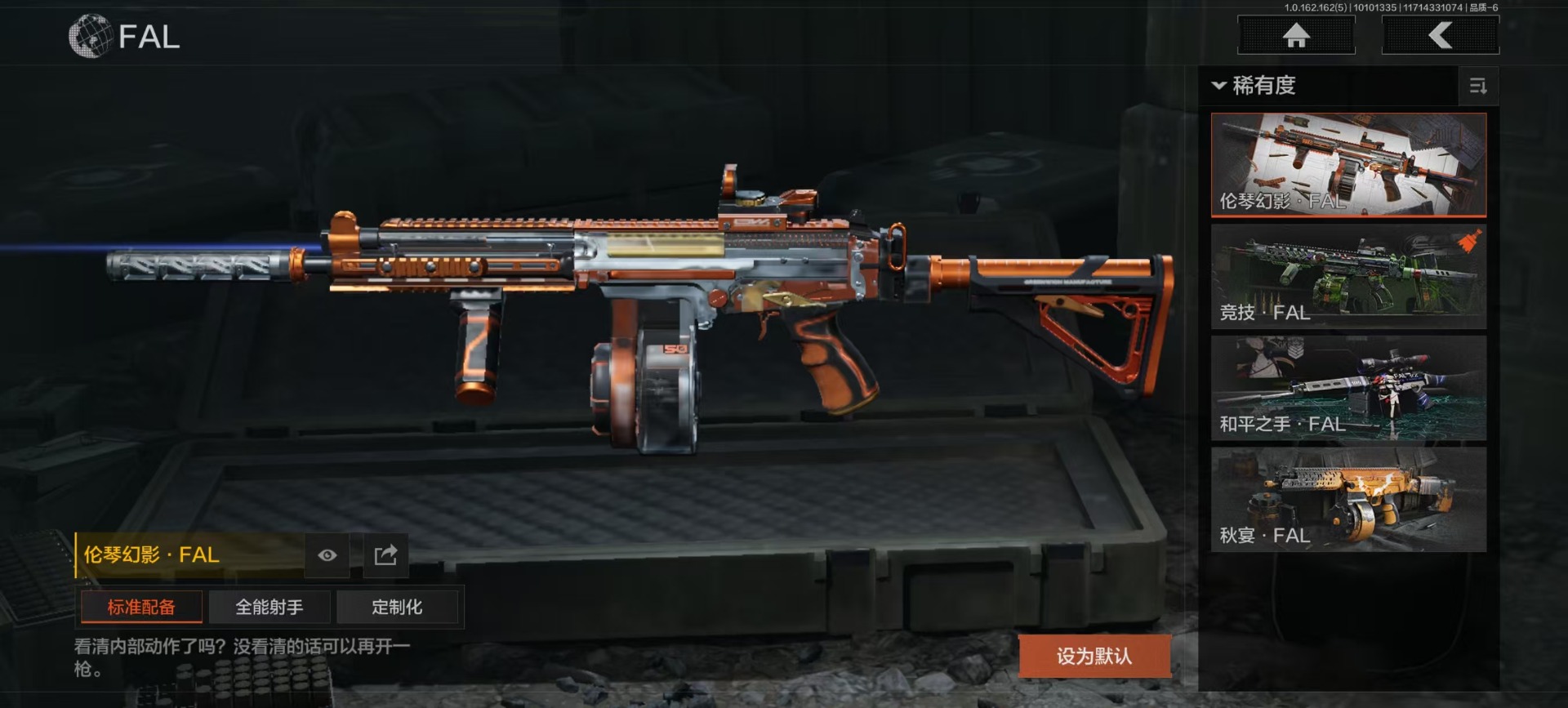 商品描述:[13509780]库存价值87.2 2近战武器 1金套装 2金枪皮 可修改实名 【柯恩币数量】:1103【角色装扮(金)】:噤声者吉利服【近战武器】:工兵铲,涂鸦利刃【金色枪皮】:竞技·FAL,伦琴幻影·FAL【紫色枪皮】:钢铁真理·F2000,最后防线·AKS74U,火力倾泻·AKM,和平之手·FAL,伦琴计量·AK74N,鱼跃丹青·DT MDR,来战·AK74N,深暗星云·M4A1,黑金国际·M4A1,极恶·AUG,恶念·Vector9,阴影·AR30【角色装扮(紫)】:都市夜影套装