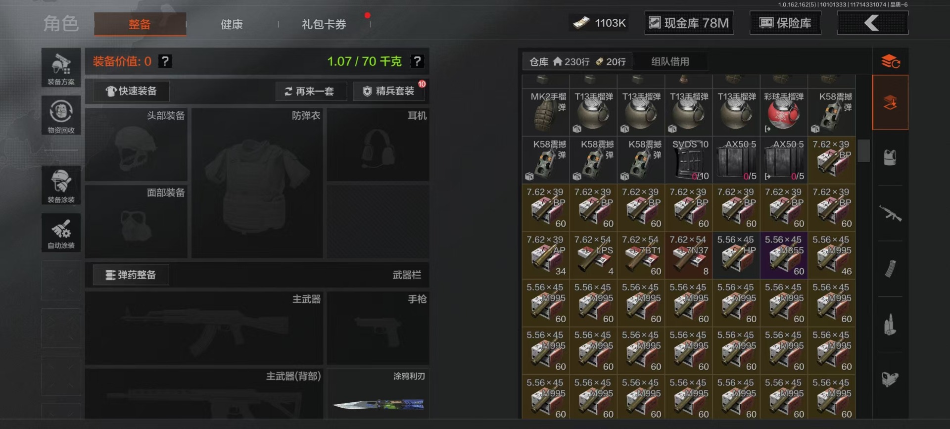 MWT4243【9刀皮 4金衣 10金枪 极品高氪号】安卓Q-等级30-仓库价值15.6m-科恩币8498k-【套装】 冥河 脉冲.马克西姆 深潜行者 噤声者吉利服 和平先锋作战套装 财团之手作战套装 高地武士. 套装 都市夜影套装 【枪皮】 包络战术.AKM 伦琴幻影.H416 战术大师.AEK 战术大师.AN94 冬夜.AK12 乌金黑曜.QBZ192 冰河碎影 .Vector9 骑士之剑 .VSS 骑士之剑 .AX50 近卫荣誉.RPK16 【近战武器】 百炼恒常 空腔战术 下玄月 涂鸦利刃(蝴蝶刀) 胜利军刀 急袭弯刀 霜狼生存刀 工兵铲 开山刀