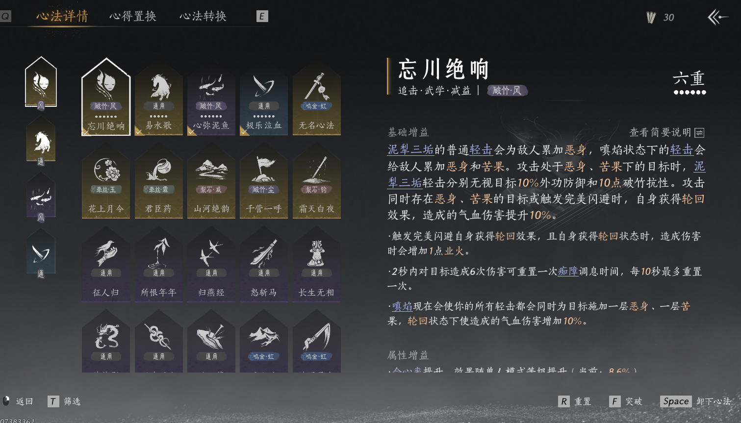 XY-076647880 风华值17875 武林造诣(鹅)30320 已用八音窍数量3 未用八音窍数量1 角色性别【文本】男 【绝境】 【无换绑CD】 【未绑定或可换绑】 【未注册】 【不支持人脸包赔】 【男】 【无】 【安卓】 【是】 【是】 稀有发型1 稀有武学奇术2 稀有发型:扶光; 稀有武学奇术:鱼龙焰舞,一雷惊蛰;