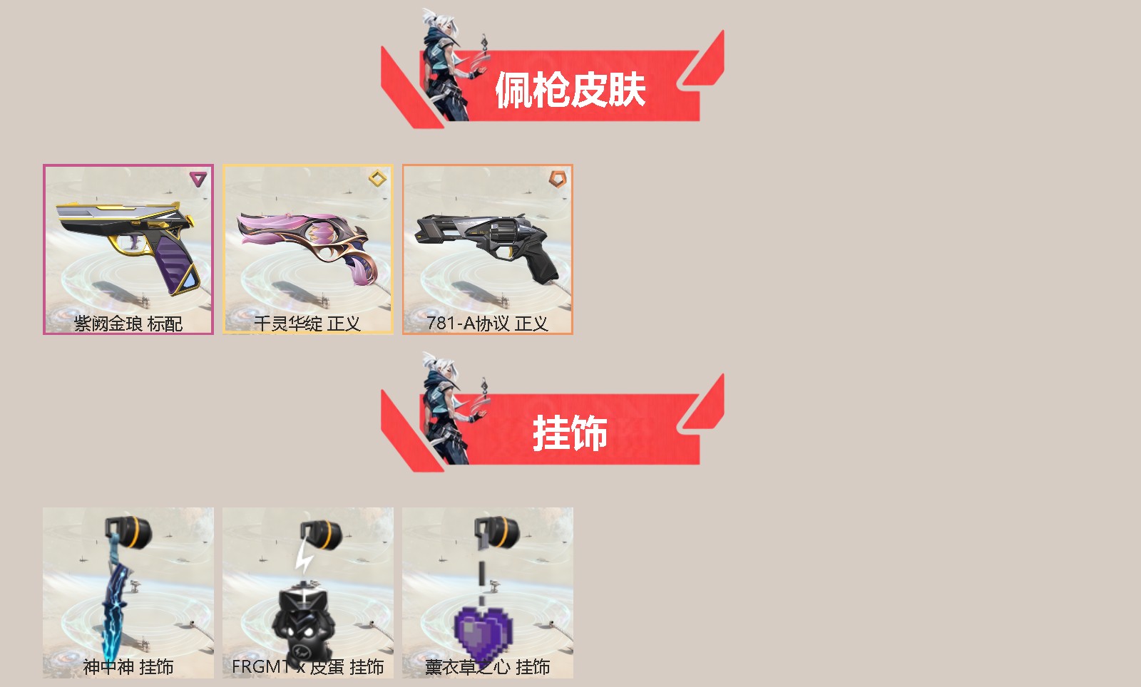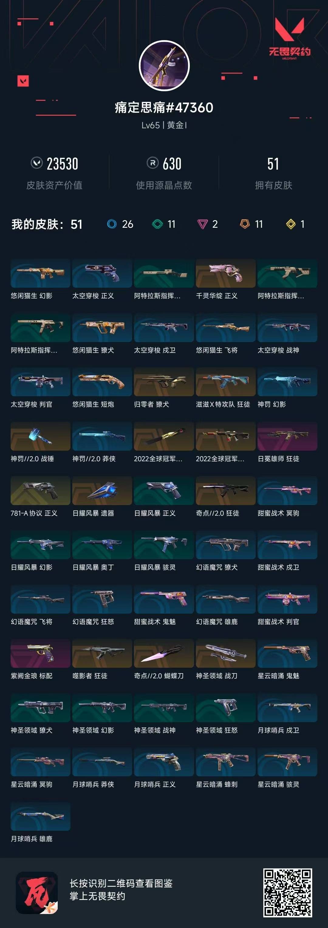 [13673375]31橙皮 6金皮 9紫皮 110皮肤 27英雄 111卡面 1250已用源晶 白银段位 【亮点皮肤】:幻影-2024全球冠军赛,战刀-2024全球冠军赛 【套装】:上古龙炎套装,2024全球冠军赛套装,RGX 11z Pro//3.0套装,全息波普//2.0套装 【近战武器皮肤】:神圣领域 战刀,龙爪,诡秘蛇影,荒土机兵热能刀,堕天遗武 仪式匕首,蝴蝶刀-侦察力量,爪刀-RGX 11z Pro 3.0,再见安打,超能偶像 应援棒,全息战斧,落英飞旋,金角扇 【佩枪皮肤】:狂怒-上古龙炎,正义-塑水宗,正义-RGX 11z Pro 3.0,鬼魅-盖世英雄,鬼魅-侦察力量,鬼魅-盖亚的复仇,标配-全息波普//2.0,标配-VCTxT1,短炮-海洋之星 【冲锋枪皮肤】:蜂刺-混沌序曲,骇灵-艾沃莉的梦之翼 【霰弹枪皮肤】:判官-上古龙炎,雄鹿-源能者危机001,判官-全息波普 【步枪皮肤】:狂徒-上古龙炎,狂徒-混沌序曲,狂徒-盖亚的复仇,狂徒-塑水宗,狂徒-无人之境,狂徒-全息波普//2.0,幻影-侦察力量,幻影-破败军械,幻影-全息波普//2.0,戍卫-天界神兵 【狙击枪皮肤】:冥驹-上古龙炎,冥驹-偃月苍龙,莽侠-RGX 11z Pro 3.0,冥驹-千灵华绽,冥驹-全息波普//2.0 【机枪皮肤】:战神-奇点,奥丁-艾沃莉的梦之翼,奥丁-西部未来 【挂饰】:超能偶像挂饰,薰衣草之心挂饰,袖珍捷风挂饰,双城之战小蛋糕挂饰,双城之战魄罗挂饰,神中神挂饰,RGX11zPro3.0挂饰,2024全球冠军赛挂饰,VCTxT1挂饰,糖葫芦挂饰,迷你机甲挂饰