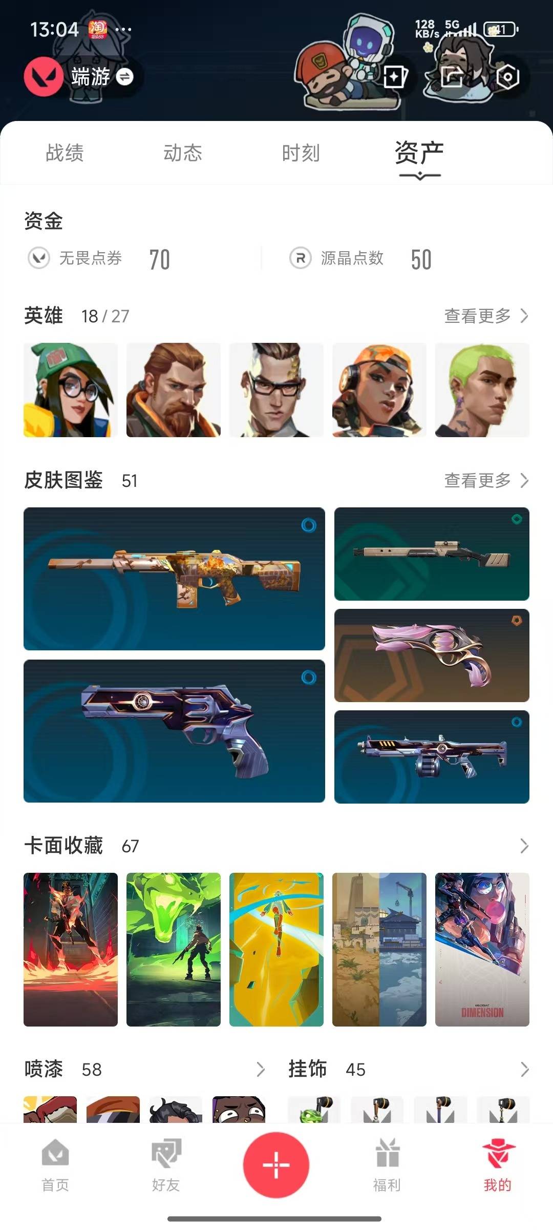 [13644182]8橙皮 1紫皮 23皮肤 19英雄 59卡面 285已用源晶 未定级段位 【近战武器皮肤】:RGX 11z Pro//2.0 蝴蝶刀,匕首-超限闪存,蝴蝶刀-侦察力量【佩枪皮肤】:标配-VCT25xEDG,正义-西部未来【步枪皮肤】:狂徒-掠影,狂徒-混沌序曲,狂徒-塑水宗【挂饰】:鱼骨头挂饰,双城之战小蛋糕挂饰,源晶工程挂饰,神中神挂饰,VCTxEDG挂饰,终章KO小金人挂饰