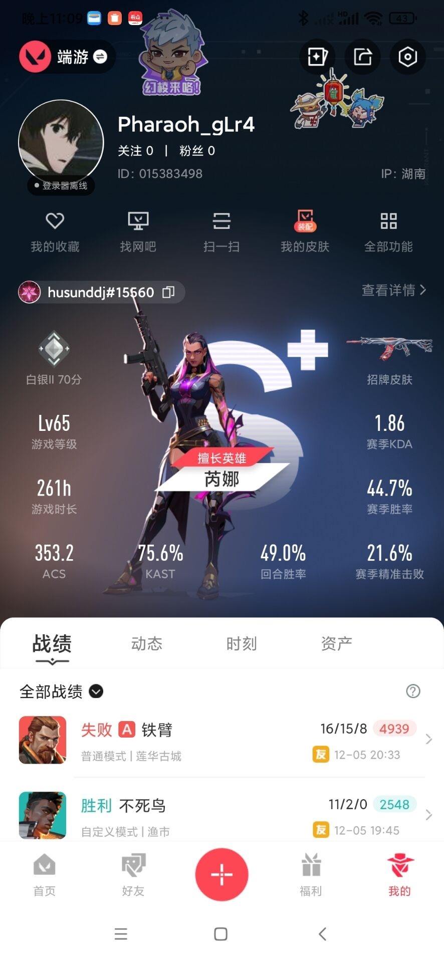 [14434076]Q192336 无畏契约/等级35/段位白银/英雄11/皮肤1/资产1290/已使用R点75/剩余R点175/紫阙金琅-狂徒