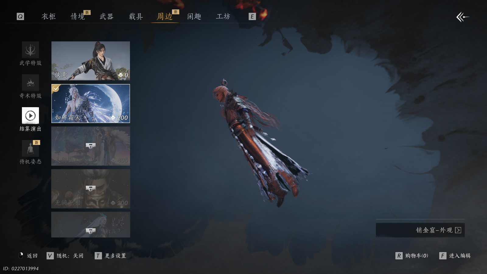 XY-076647880 风华值17875 武林造诣(鹅)30320 已用八音窍数量3 未用八音窍数量1 角色性别【文本】男 【绝境】 【无换绑CD】 【未绑定或可换绑】 【未注册】 【不支持人脸包赔】 【男】 【无】 【安卓】 【是】 【是】 稀有发型1 稀有武学奇术2 稀有发型:扶光; 稀有武学奇术:鱼龙焰舞,一雷惊蛰;