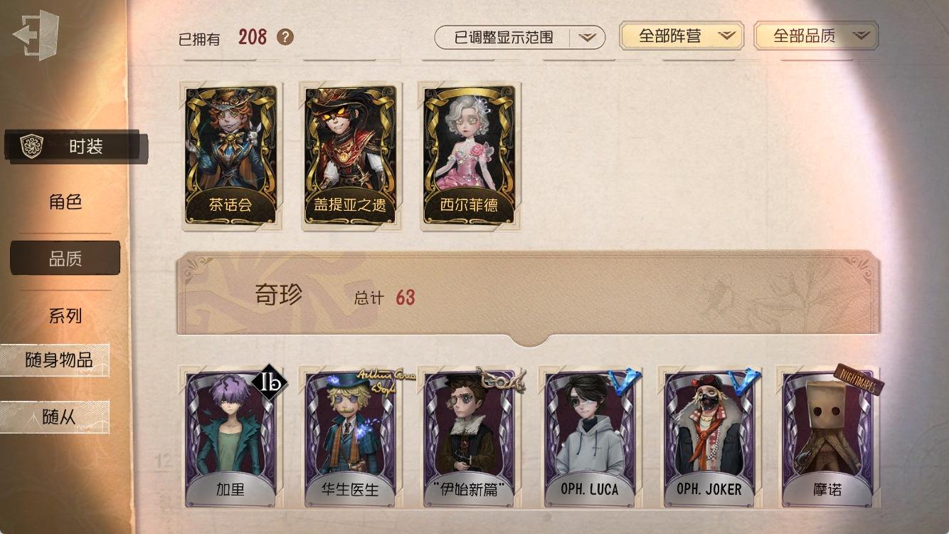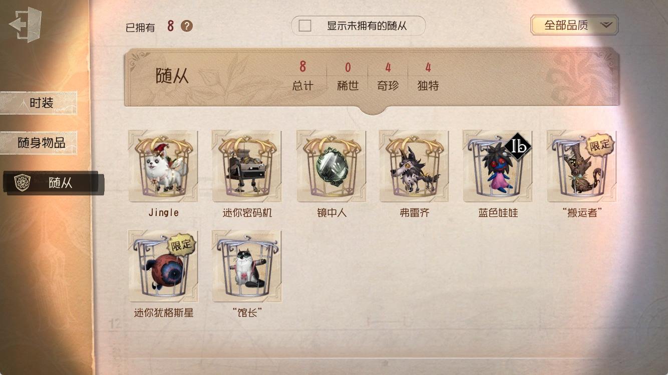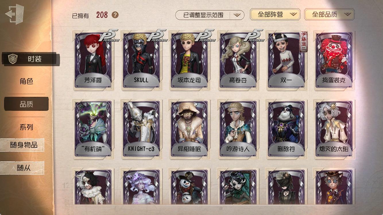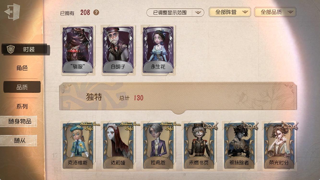 [14028274]OPPO-非账号转移 手机账号 559时装 23金皮 147紫皮 20随从 186随身物品 【时装】:勘探员-盖提亚之遗,爱哭鬼-摩诺,红蝶-壹原侑子,渔女-Chef K,小提琴家-不羁的浪漫,野人-雪原猎人,佣兵-柴郡猫,佣兵-赤井秀一,蜘蛛-花祭,“囚徒”-天海兰太郎,“小女孩”-欧律狄刻,调香师-提炼师,记者-伊布,医生-司药,雕刻家-善忘的海马体,记者-华生小姐,画家-掌中篆记,幸运儿-蛋小黄的好朋友,调香师-Buffy,教授-紧急运输,古董商-菌丝研究,画家-多色印刷,蜘蛛-不息载械,木偶师-义体再构,小说家-“伊始新篇”,击球手-迫降专家,空军-尼德霍格,空军-寒香舞,空军-毛利兰,机械师-不会枯萎的花,机械师-小红帽,26号守卫-蛋壳先生,爱哭鬼-点金,病患-逃罪之人,“杰克”-盛宴伯爵,红夫人-贝拉夫人,红蝶-花嫁,调香师-今夜不再,调香师-Lady K,“小女孩”-滚滚伙伴,医生-罪木蜜柑,幸运儿-苗木诚,幸运儿-拉塔托斯克,孽蜥-窃梦行者,盲女-暗金蛋糕,盲女-吉尔达,梦之女巫-川上富江,“囚徒”-蝰