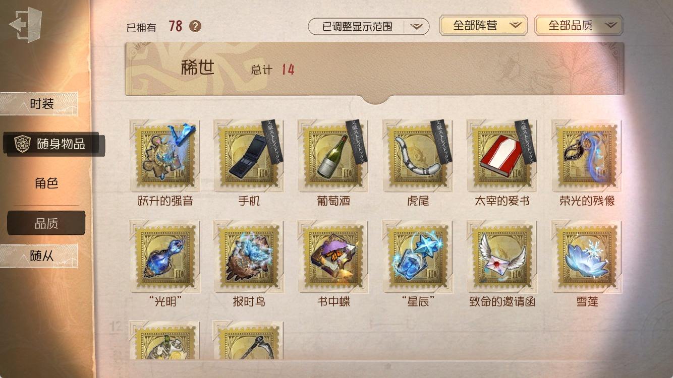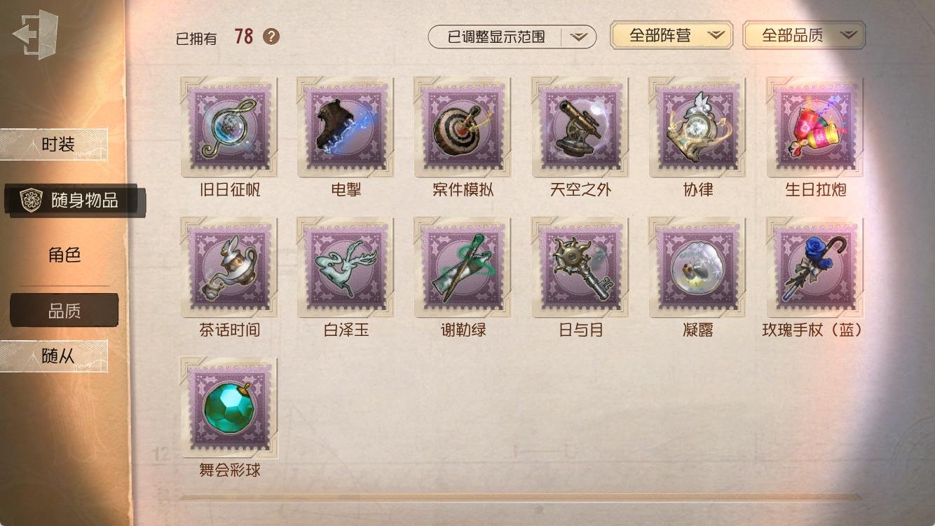 [13699808]安卓官服 手机账号 145时装 8金皮 37紫皮 12随从 37随身物品 【时装】:歌剧演员-幕外之音,作曲家-幽灵帆,爱丽丝·德罗斯-片刻闲暇,渔女-Chef K,调香师-提炼师,咒术师-噩之牙,作曲家-澄明的理性,骑士-Mentor K,骑士-艺术品商人,园丁-郁金香之梦,医生-司药,红蝶-硫火,调香师-Buffy,医生-永生花,小说家-“伊始新篇”,拉拉队员-采集速巡,宿伞之魂-桃面书生,祭司-“朝圣者”,教授-温泉煮酒,祭司-梦之使者,蜡像师-淋浴,昆虫学者-可妮兔,红夫人-女大公,画家-江户川乱步,红夫人-贝拉夫人,红蝶-白无垢,红蝶-更纱,调酒师-海盐特调,舞女-香薰桑拿,调香师-笼中之蝶,调香师-冰上舞蹈,调香师-致命温柔,调香师-今夜不再,调香师-Lady K,小提琴家-孤月骑士,医生-往昔,“使徒”-校监夫人,冒险家-爱丽丝,宿伞之魂-安魂曲【随身物品】:遗忘之花(稀世),沙滩镜(奇珍),月光(奇珍),记忆囚笼(奇珍),酩酊(奇珍),折柳(稀世),法典(奇珍),旧日征帆(奇珍),玫瑰手杖(蓝)(奇珍),长生(奇珍),焚樱(奇珍),玫瑰之下(稀世),完美人偶(稀世),星云瓶(稀世),小人偶(奇珍),“星辰”(稀世),梦魇结晶(稀世),凝露(奇珍),凝聚之水(奇珍),书中蝶(稀世)