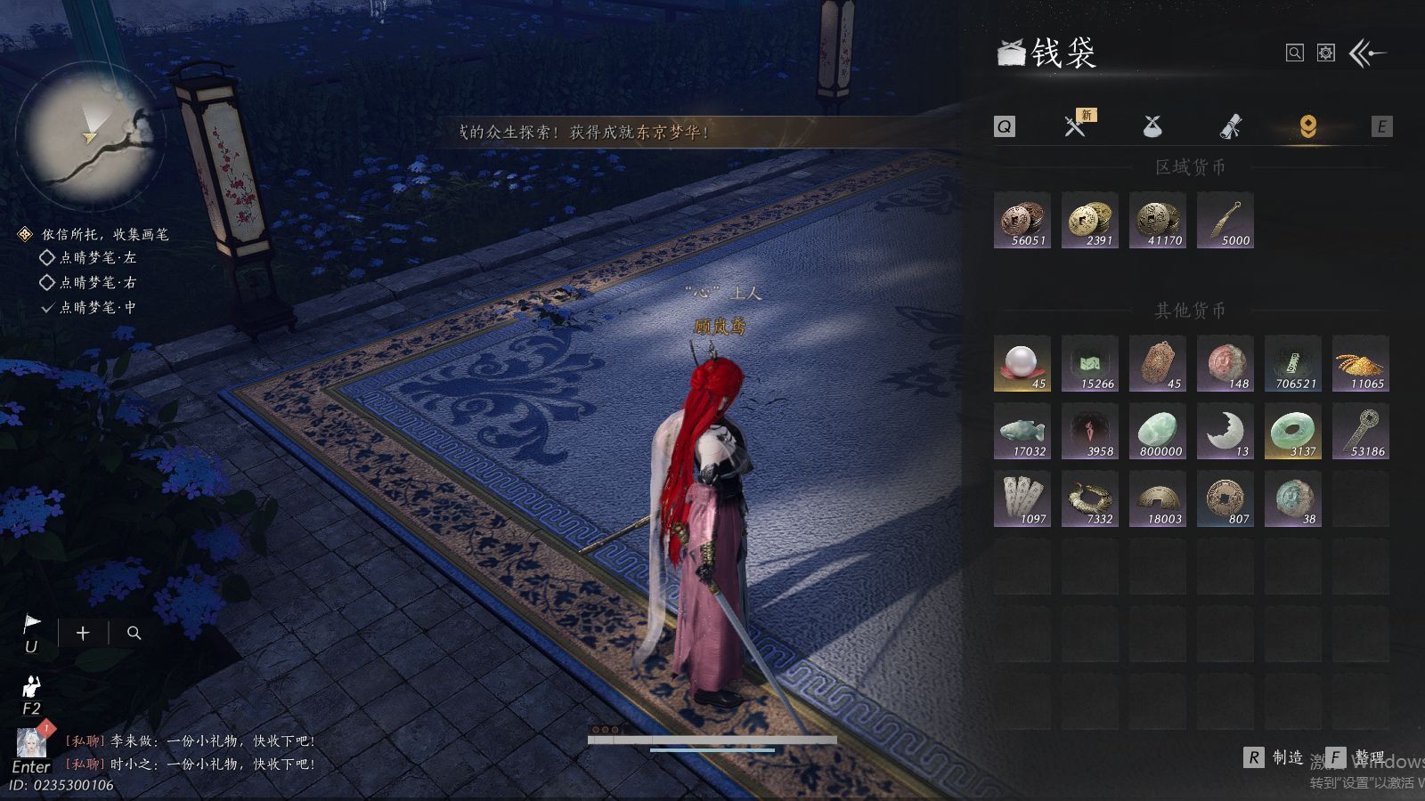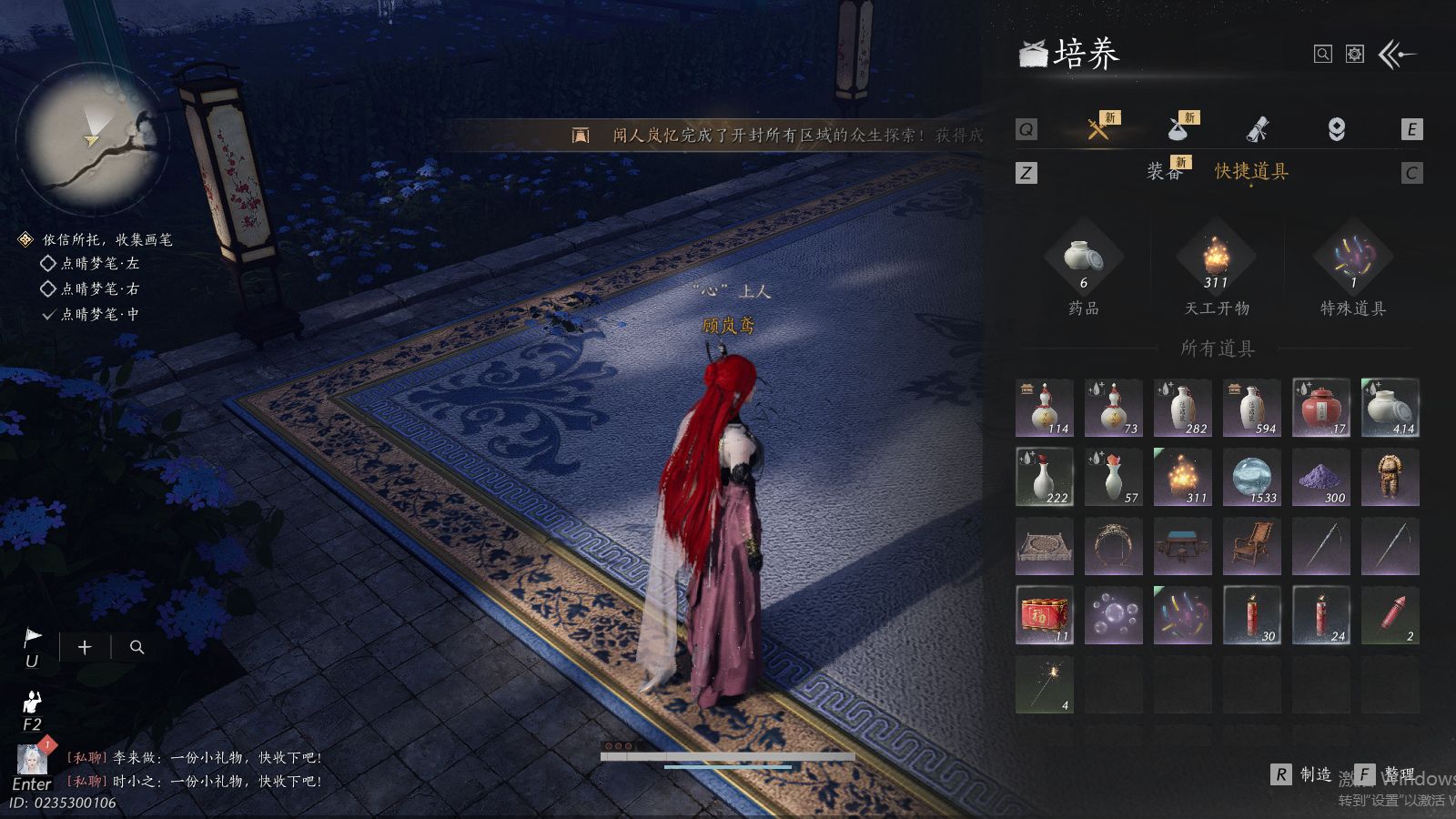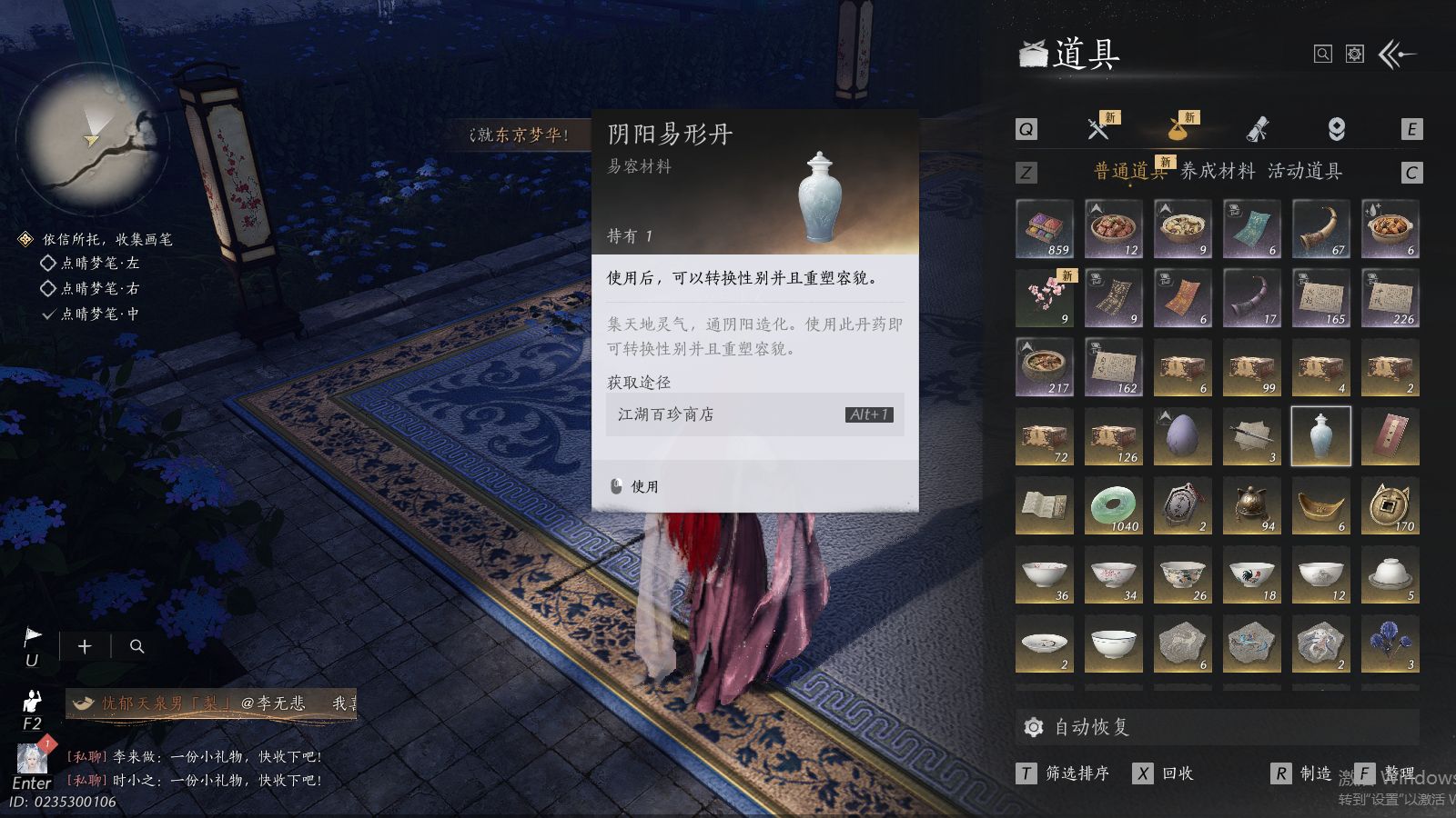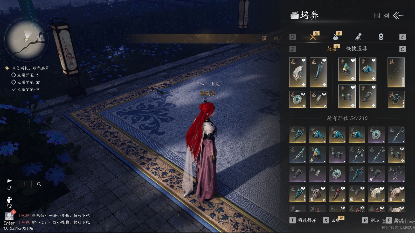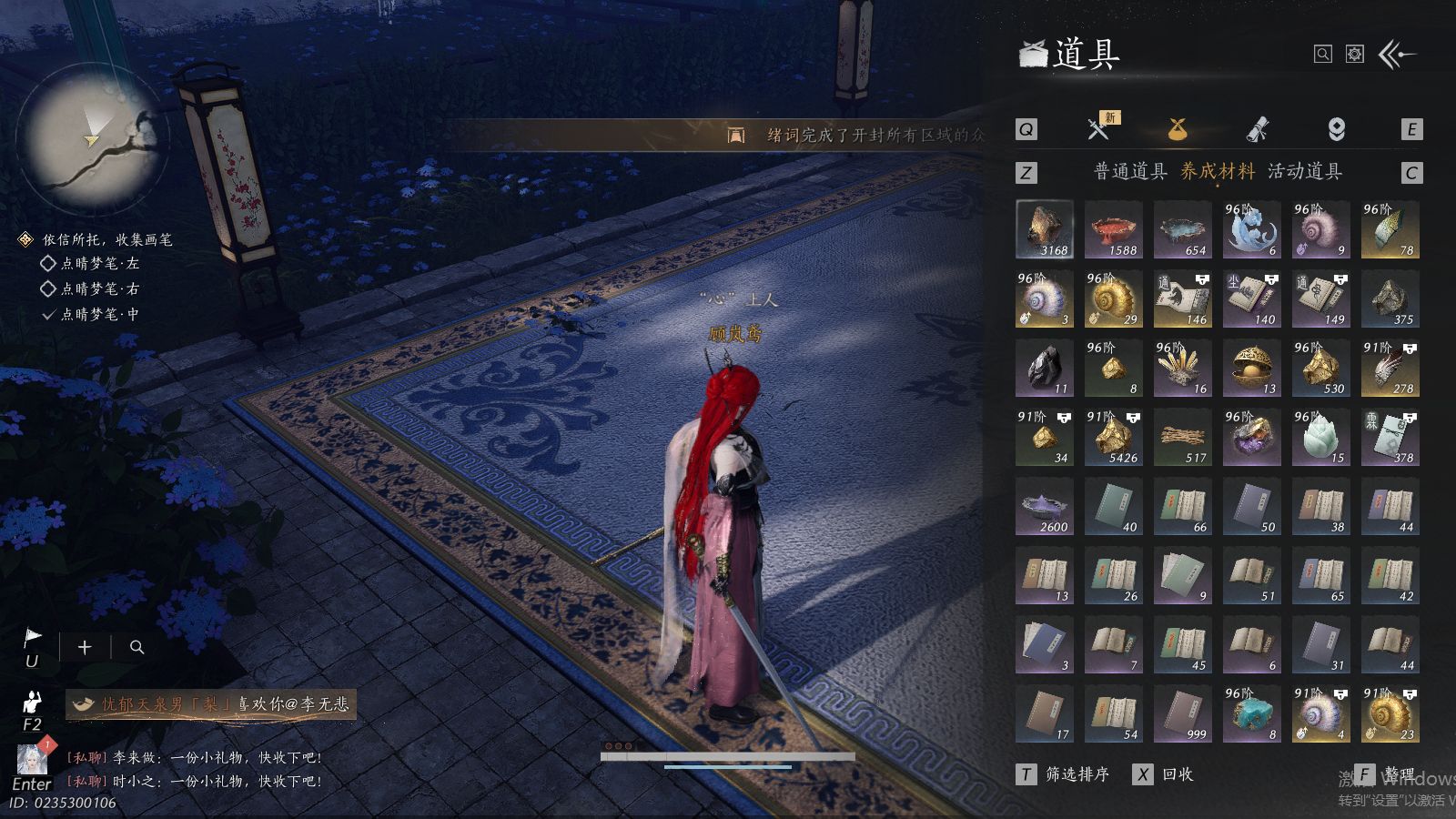 XY-076654477 角色性别【文本】女 【绝境】 【有换绑CD】 【不可换绑】 【未注册】 【不支持人脸包赔】 【女】 【是】 【是】 【否】XY-076643637 风华值21989 武林造诣(鹅)35550 已用八音窍数量3 未用八音窍数量0 等级100 角色等级100 角色性别【文本】男 【无换绑CD】 【绝境】 【无冷却】 【不支持人脸包赔】 【男】 【手机帐号】 【网易手机账号】 【是】 【是】 【未拥有】 【已知晓】 【自己上传】 稀有套装3 稀有武学奇术1 套装14 武学奇术1 稀有套装:有狐绥绥,乌纱红漪,晏平生; 稀有武学奇术:一雷惊蛰; 套装:清河强者,金池鲤,翠羽顾,江湖客,逐红花,一心三藏,丹雀,午风清,雁还乡,射虎南山,宿露轻盈,驰走西风,相思曲,云中锦书; 武学奇术:墨泼风;