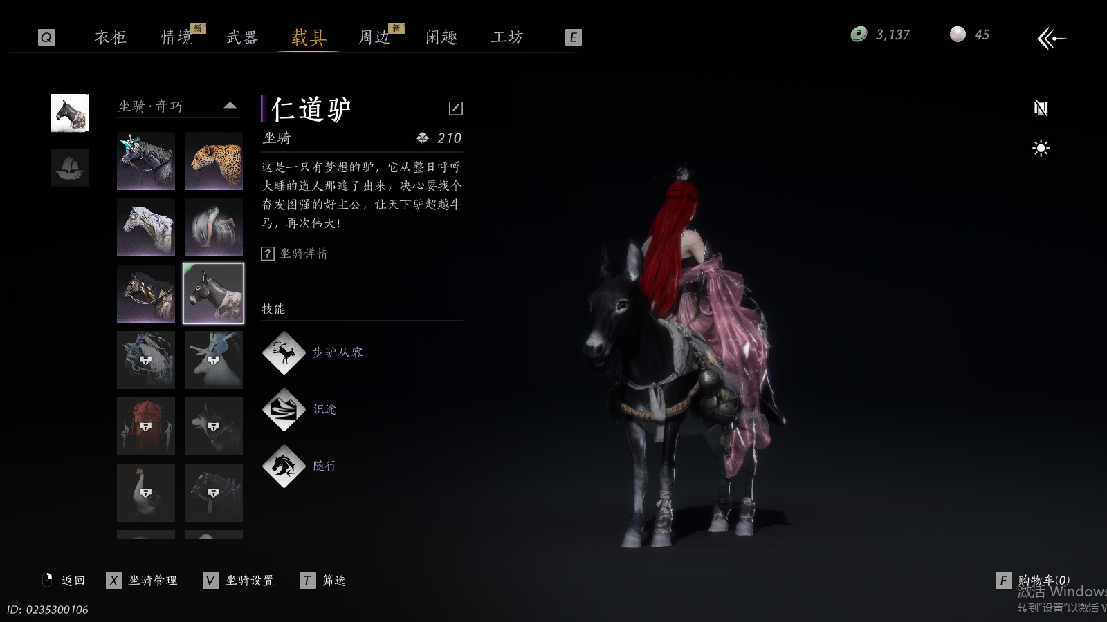 商品描述: 【漂亮奶妈号-青丘千岁-醉蓬莱-瑞鹤仙-配饰-澄心不染-蝶梦水云-9套258-发型-栖彤霞-芙蓉泣露-鹊桥仙-有转性丹-双奶妈武学特效】 风华值56577 武林造诣(鹅)35225 已用八音窍数量6 等级100 角色性别【文本】女 【绝境】 【无换绑CD】 【未绑定或可换绑】 【不支持人脸包赔】 【女】 【无】 【是】 【是】 稀有套装5 稀有发型3 稀有武学奇术2 特殊道具1 套装16 武器外观7 坐骑6 稀有套装:问春何苦,乌纱红漪,晏平生,瑞鹤仙,青丘千岁; 稀有发型:栖彤霞,鹊桥仙,芙蓉泣露; 稀有武学奇术:蝶舞飞花,蝶引寒星; 特殊道具:阴阳易形丹; 套装:蝶梦水云,澄心不染,醉蓬莱,阮郎归,落花闻诏,纵横,青草原,蜀戏春,花月天真,卿知吾心,夜郎幽问,金鳞阙,剑影藏心,蝎心蛟影,驰走西风,射虎南山; 武器外观:大满贯,衔鳞光,舞鳞光,月中诗,无晴,无影,凌霜触雪; 坐骑:盗骊,白义,飞毛腿,飒露子,仁道驴,疾追豹;