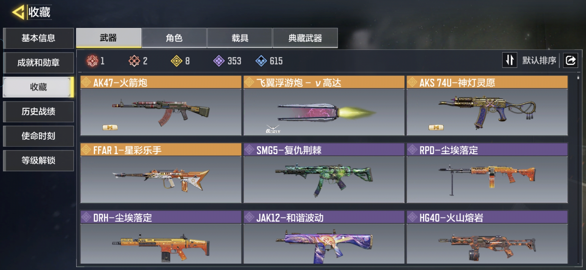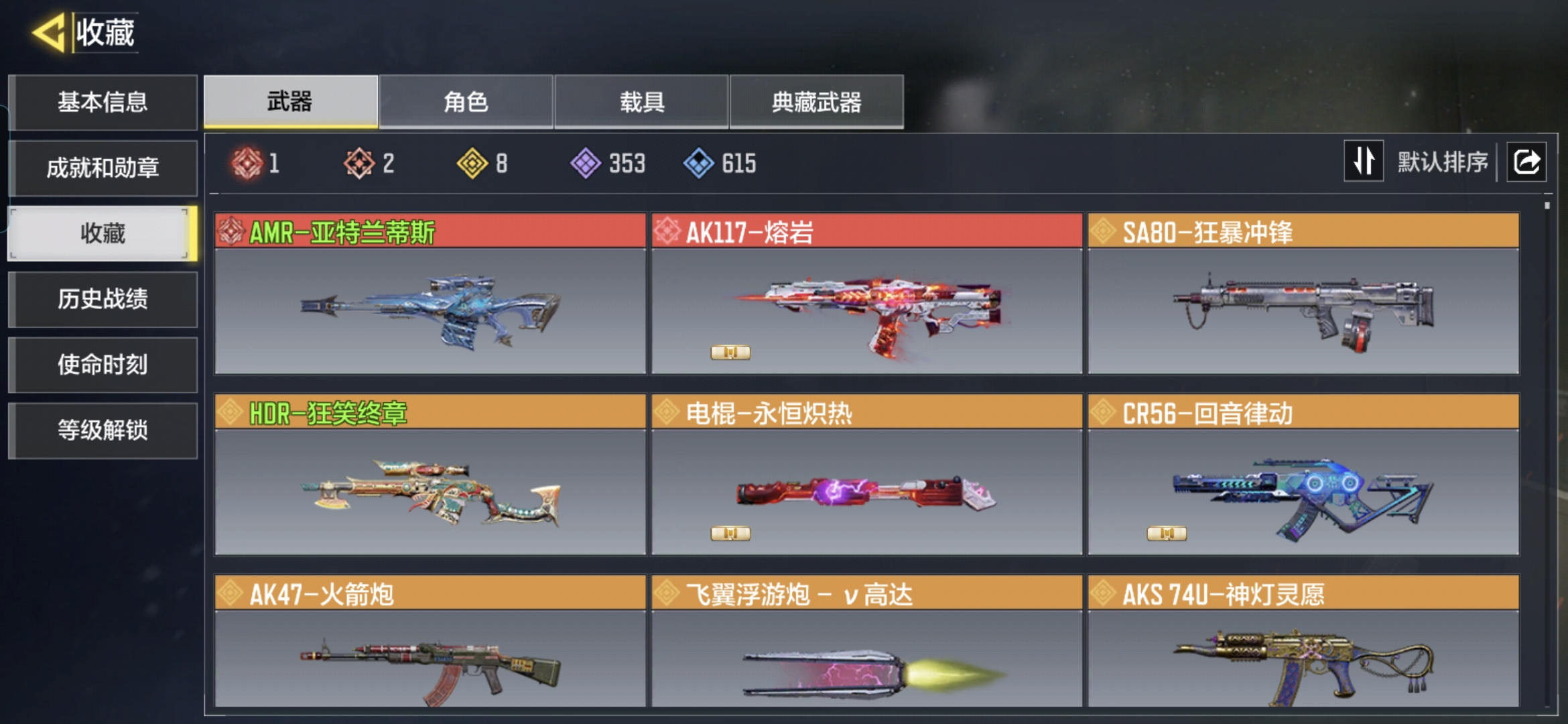 H5989有二次 安卓Q-段位白银 等级261 【1神话】 Kilo 141-暗夜奏鸣曲 3级 【2传说】 M4-皇家黑魂 Kar98K-雷鸣光束 【96史诗348普通武器25角色4载具】MHZ2444【4神话 3满级 12传说 1典藏】安卓Q-等级164-史诗枪械82 【4神话3满级】 Type 19-丹青万壑(满) AMR-亚特兰蒂斯(满) 0den-神圣惩戒(满) AK117-熔岩 【12传说】 AK47-火箭炮 CR56-回音律动 Locus-红色彗星 Chopper-地狱猎犬·典藏 AS VAL-虛相链锁 电棍-永恒炽热 飞翼浮游炮- v高达 M4G-魔法喵托邦 FFAR 1-星彩乐手 AKS 74U-神灯灵愿 M4-皇家黑魂 RPD-一路悠扬 【1典藏传说】 Chopper-地狱猎犬·典藏