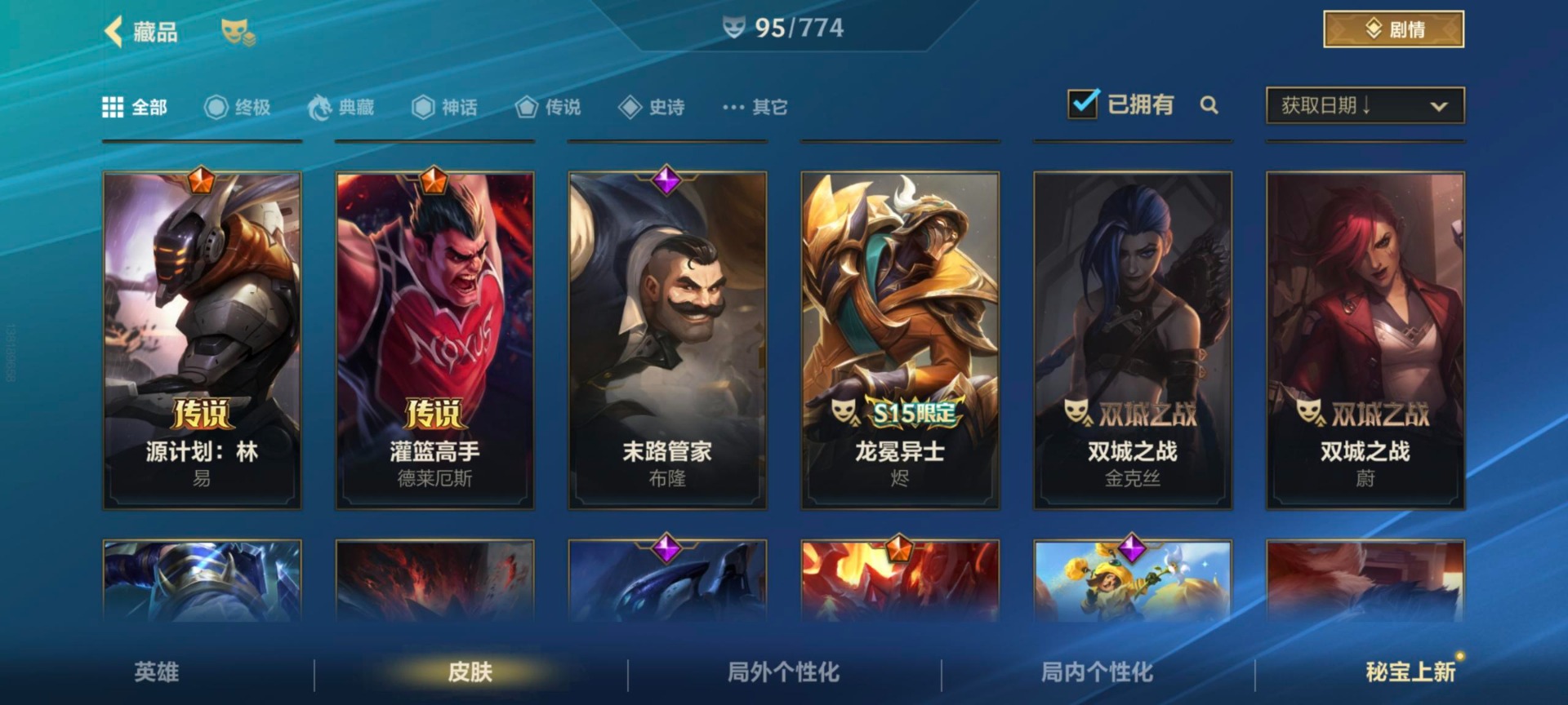 C安卓微信区:可二次实名 回城特效紫气东来 英雄133 皮肤409 11神话35传说238史诗 傲世宗师 至臻喵喵魅影金克丝 黎明使者破晓之殇佛耶戈 夜星流火金克丝 乘龙破渊李青 冠星耀辰盖伦 海克斯科技嘉文四世 龙的传人李青 龙吟九霄李青 摄魂使者薇恩 无与伦比易 战斗学院白金学长伊泽瑞尔安卓微信区:可二次实名 英雄131 皮肤378 1终极4神话31传说194史诗 华贵铂金Ⅰ 【终极皮肤】1 寻道世尊永恩 【典藏皮肤】0 【神话皮肤】4 夜星流火金克丝 满弓镇魂箭无虚发韦鲁斯 海克斯科技阿利斯塔 灰烬骑士派克