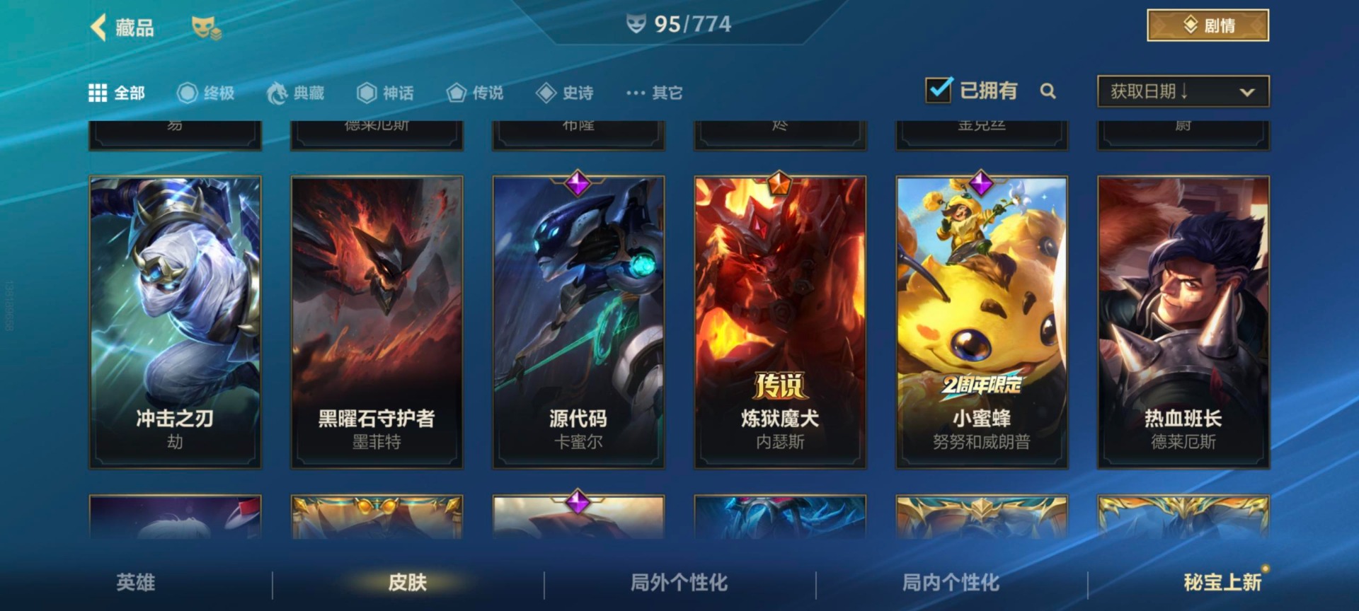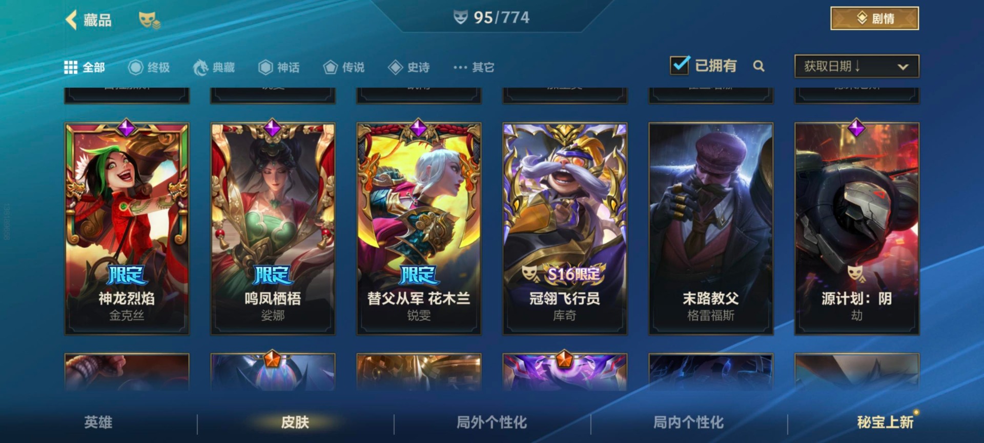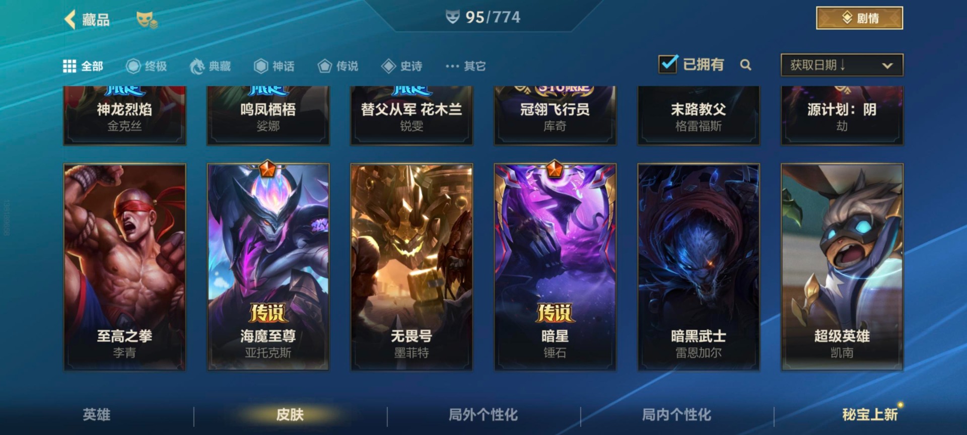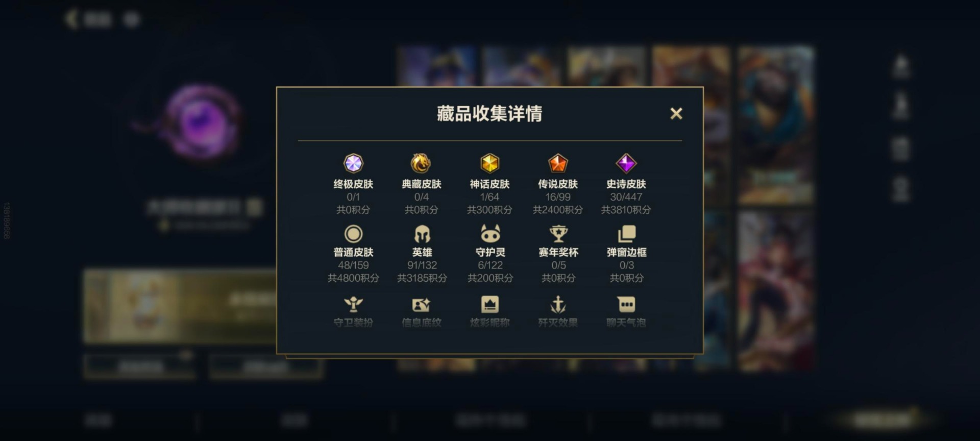 安卓Q区:可二次实名 英雄132 皮肤324 1典藏4神话42传说164史诗 璀璨钻石Ⅰ