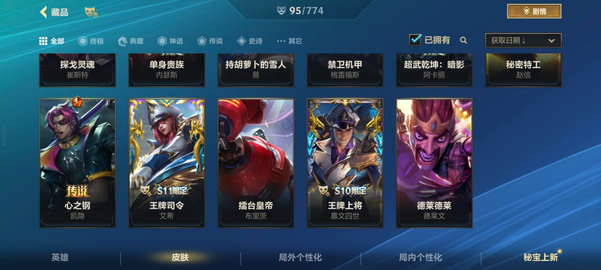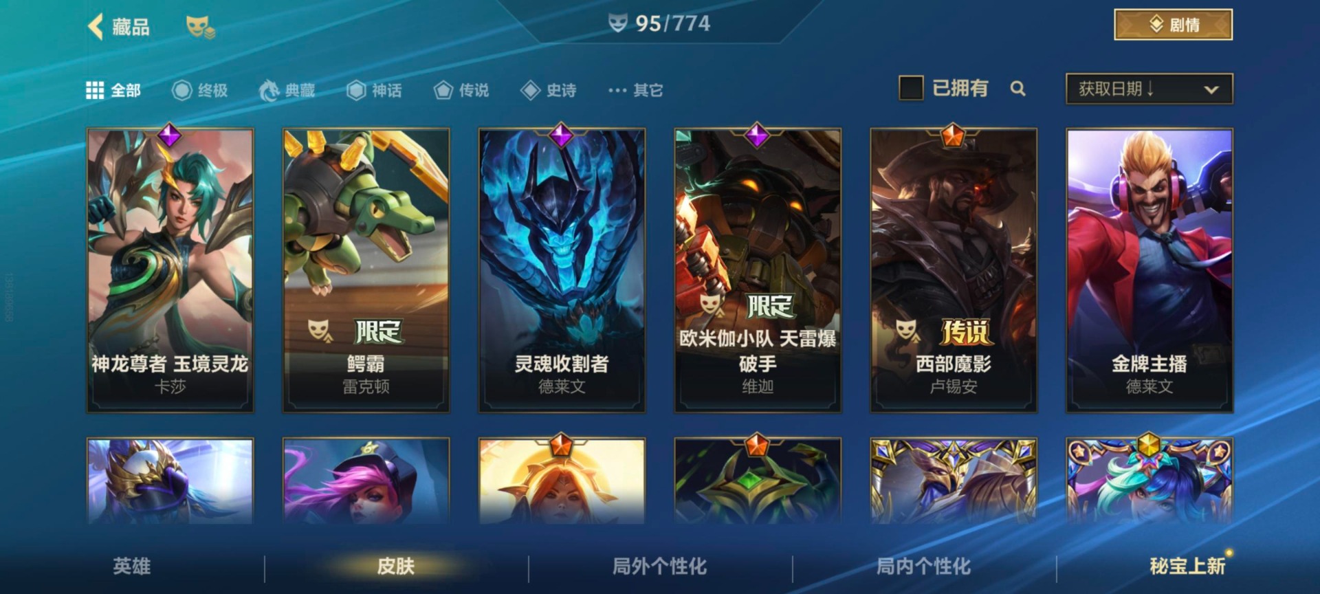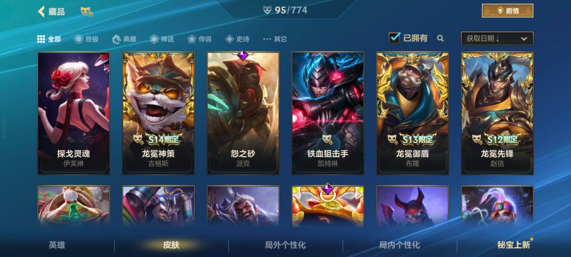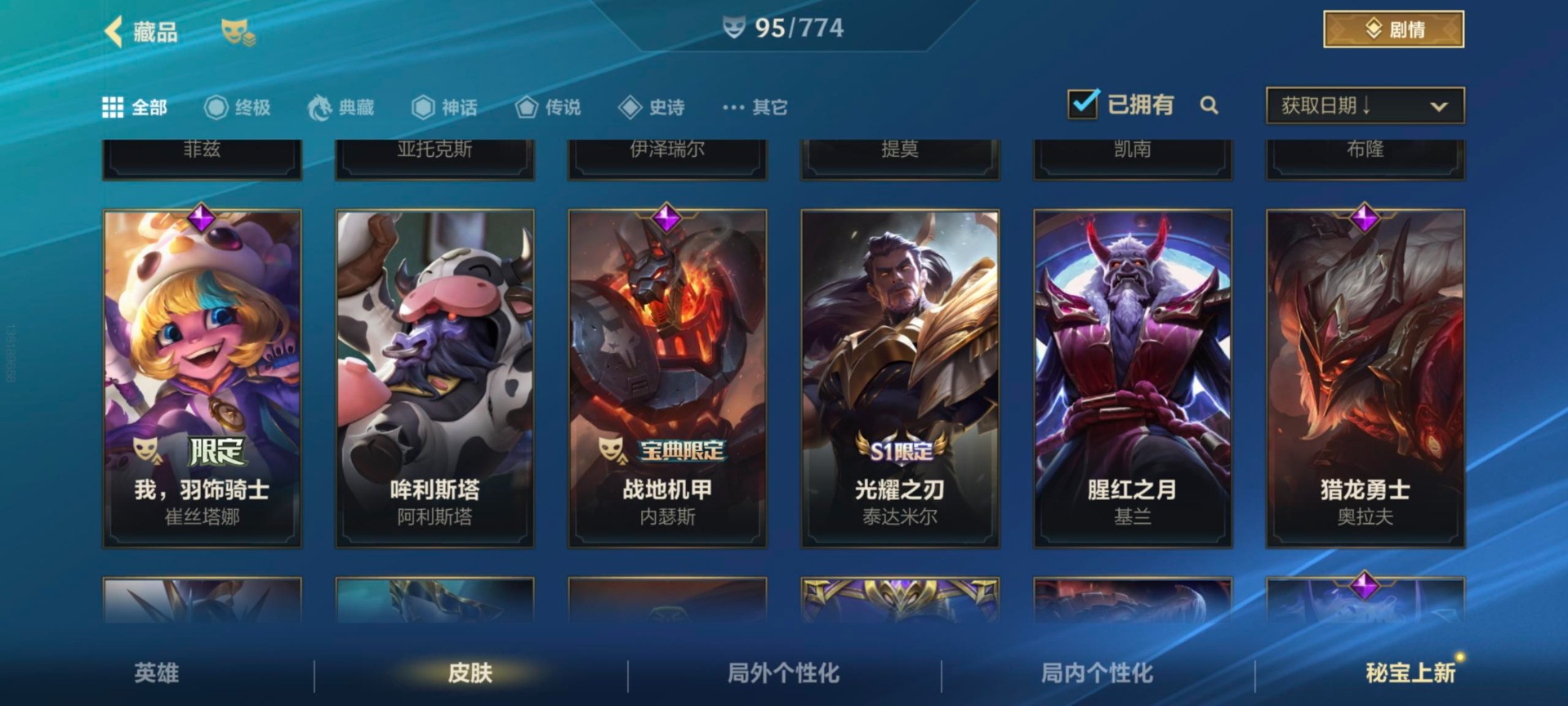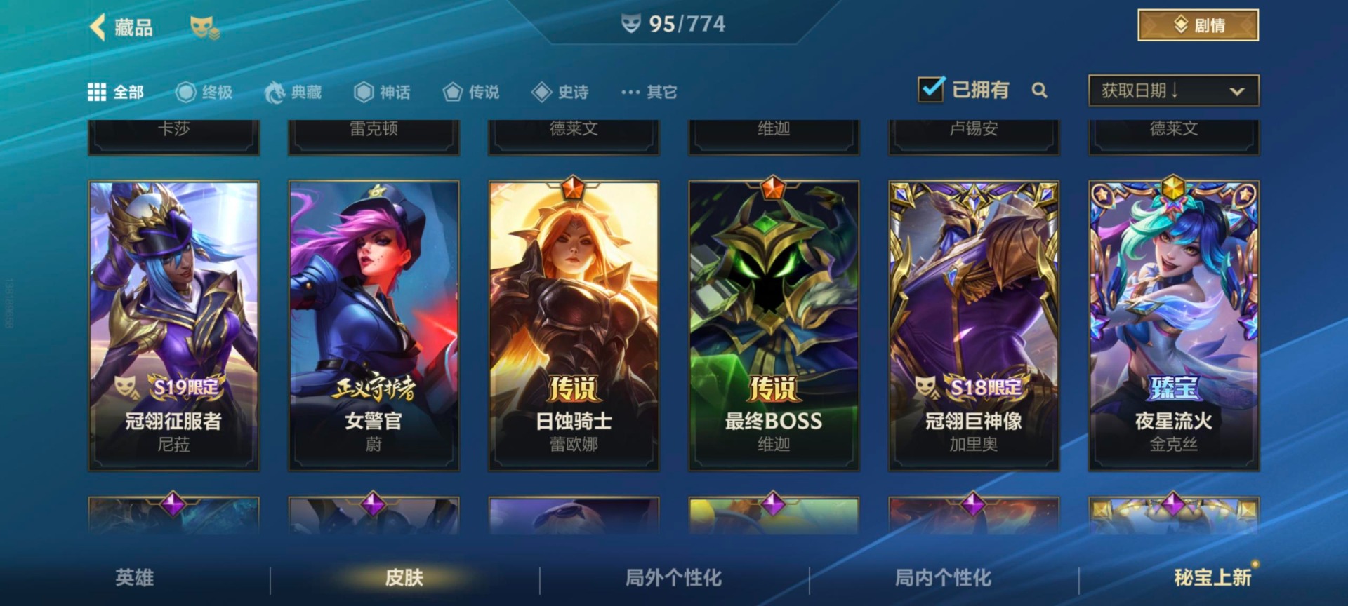 安卓Q区:可二次实名 英雄132 皮肤324 1典藏4神话42传说164史诗 璀璨钻石Ⅰ
