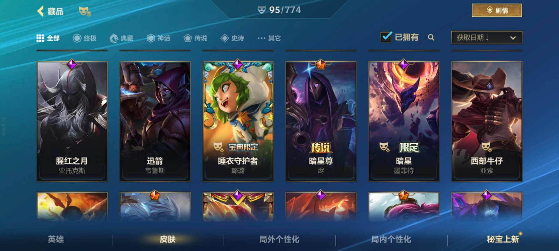 苹果微信区:可二次实名 英雄129 皮肤410 1终极4典藏19神话46传说243史诗 流光翡翠Ⅱ 白龙回城特效 1.5W龙魂币【终极皮肤】1 寻道世尊永恩 【典藏皮肤】4 超武乾坤裁决德莱厄斯 超武乾坤孤拳瑟提 超武乾坤虹影劫 超武乾坤征服莎弥拉 【神话皮肤】19 臻藏水晶玫瑰拉克丝 臻藏御风墨影亚索 至臻星域秘刃泰隆 至臻玉剑传说寒潭夭夭娜美 至臻水晶玫瑰格温 至臻心之钢永恩 至臻玉剑传说武剑仙锐雯 黎明使者破晓之殇佛耶戈