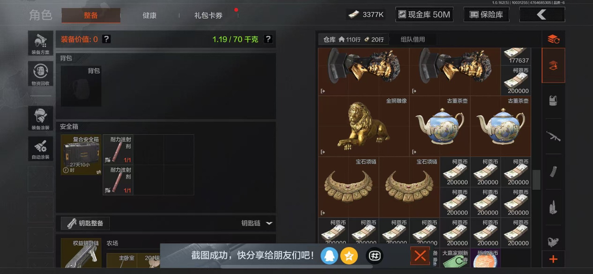 MWT4243【9刀皮 4金衣 10金枪 极品高氪号】安卓Q-等级30-仓库价值15.6m-科恩币8498k-【套装】 冥河 脉冲.马克西姆 深潜行者 噤声者吉利服 和平先锋作战套装 财团之手作战套装 高地武士. 套装 都市夜影套装 【枪皮】 包络战术.AKM 伦琴幻影.H416 战术大师.AEK 战术大师.AN94 冬夜.AK12 乌金黑曜.QBZ192 冰河碎影 .Vector9 骑士之剑 .VSS 骑士之剑 .AX50 近卫荣誉.RPK16 【近战武器】 百炼恒常 空腔战术 下玄月 涂鸦利刃(蝴蝶刀) 胜利军刀 急袭弯刀 霜狼生存刀 工兵铲 开山刀