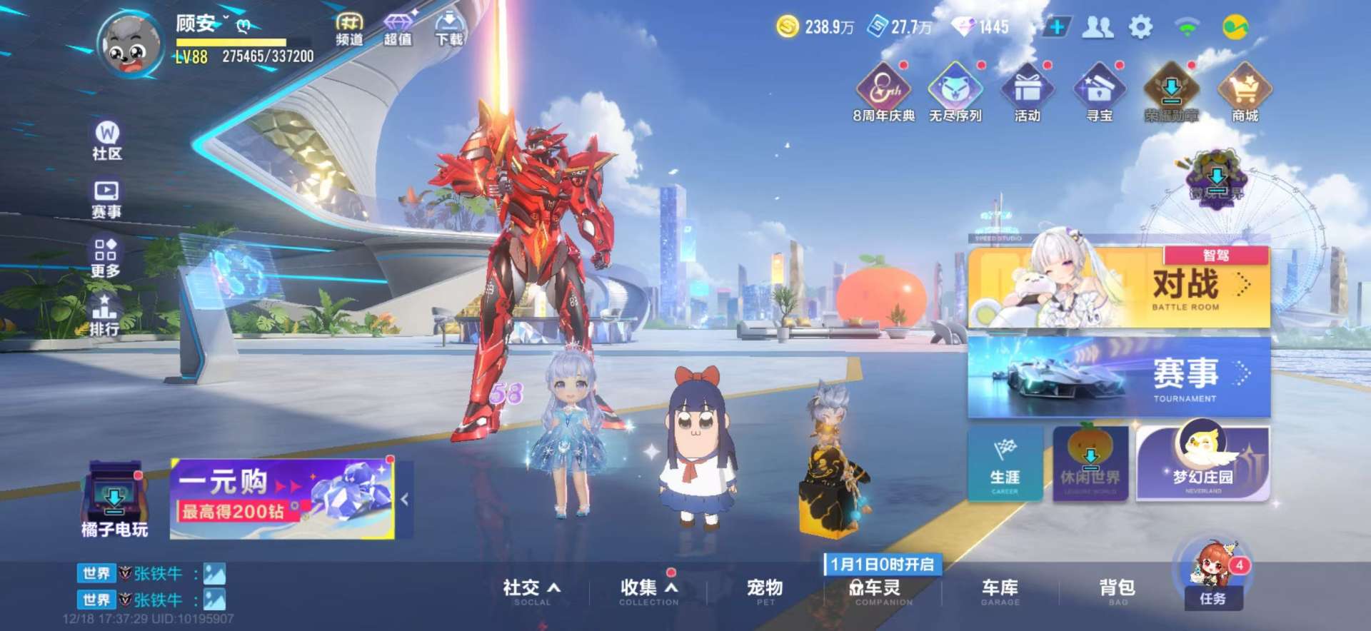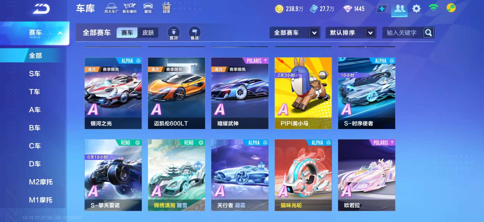 BZ642344 【最强机甲-神威泰坦RE/宠物-竞速道具俱全/多套装服饰】 A车数量17 游戏等级68 车皮肤数量5 T车数量1 【否】 【可二次实名】 【永久包赔】 【苹果QQ】 永久T车1 永久T车:神威泰坦RE;