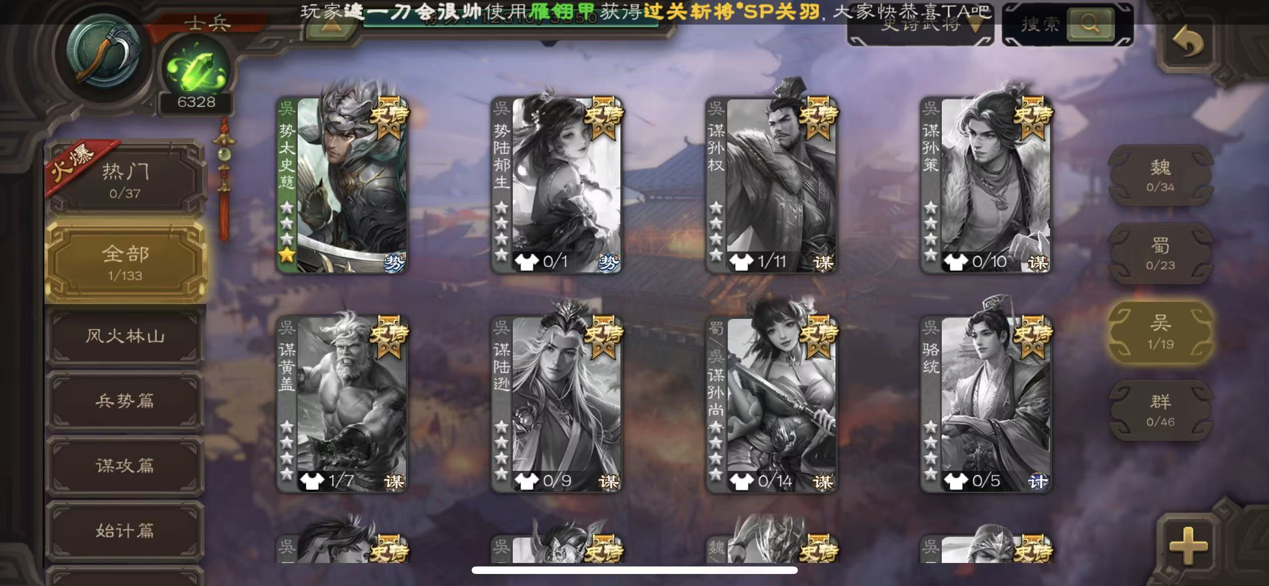 商品描述:士兵势太史慈6300将魂(可换白马)3.6万羽毛4.8万银币4.5万豆三卡1200篮子